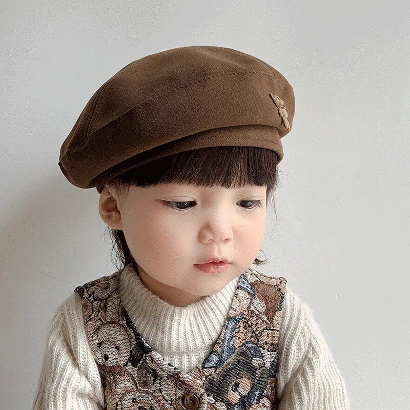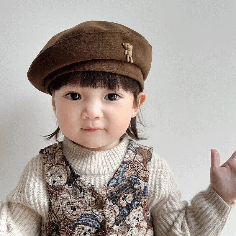 📚 儿童帽子秋冬季女孩防寒加绒韩系时尚可爱2025新款画家小熊贝雷帽