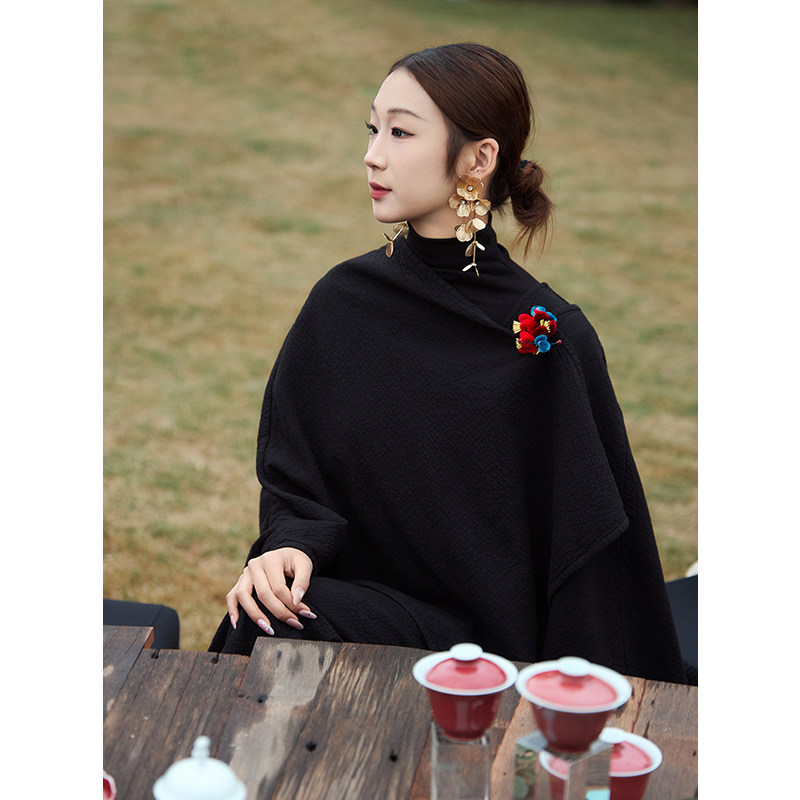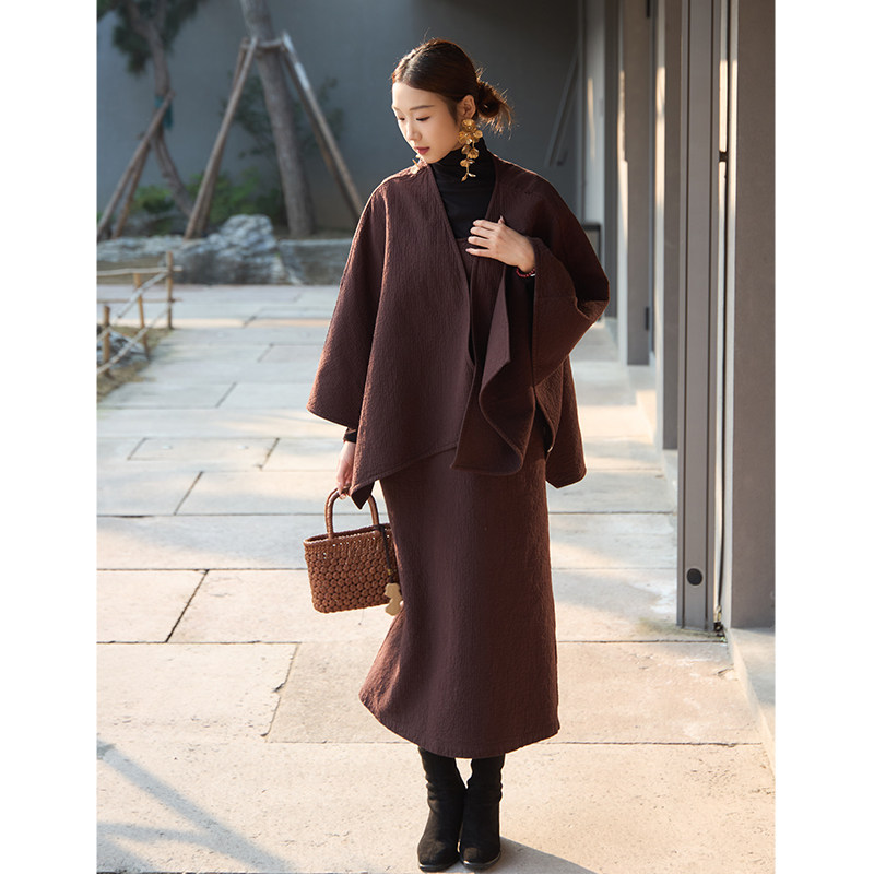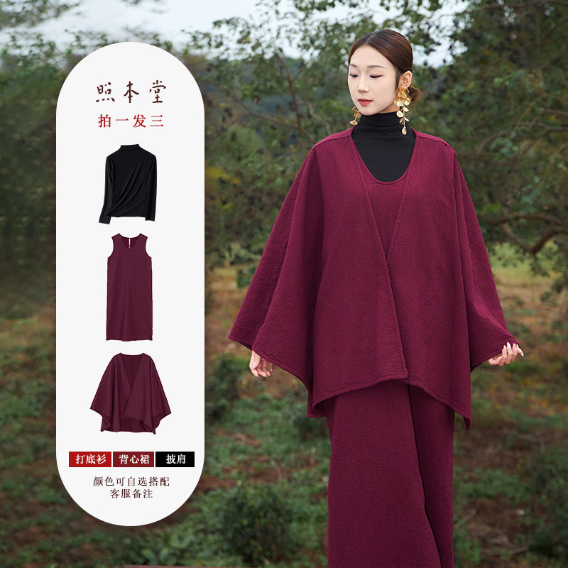 📚 【照本堂】2025冬季新款女装新中式国风双层背心裙披肩套装W32873