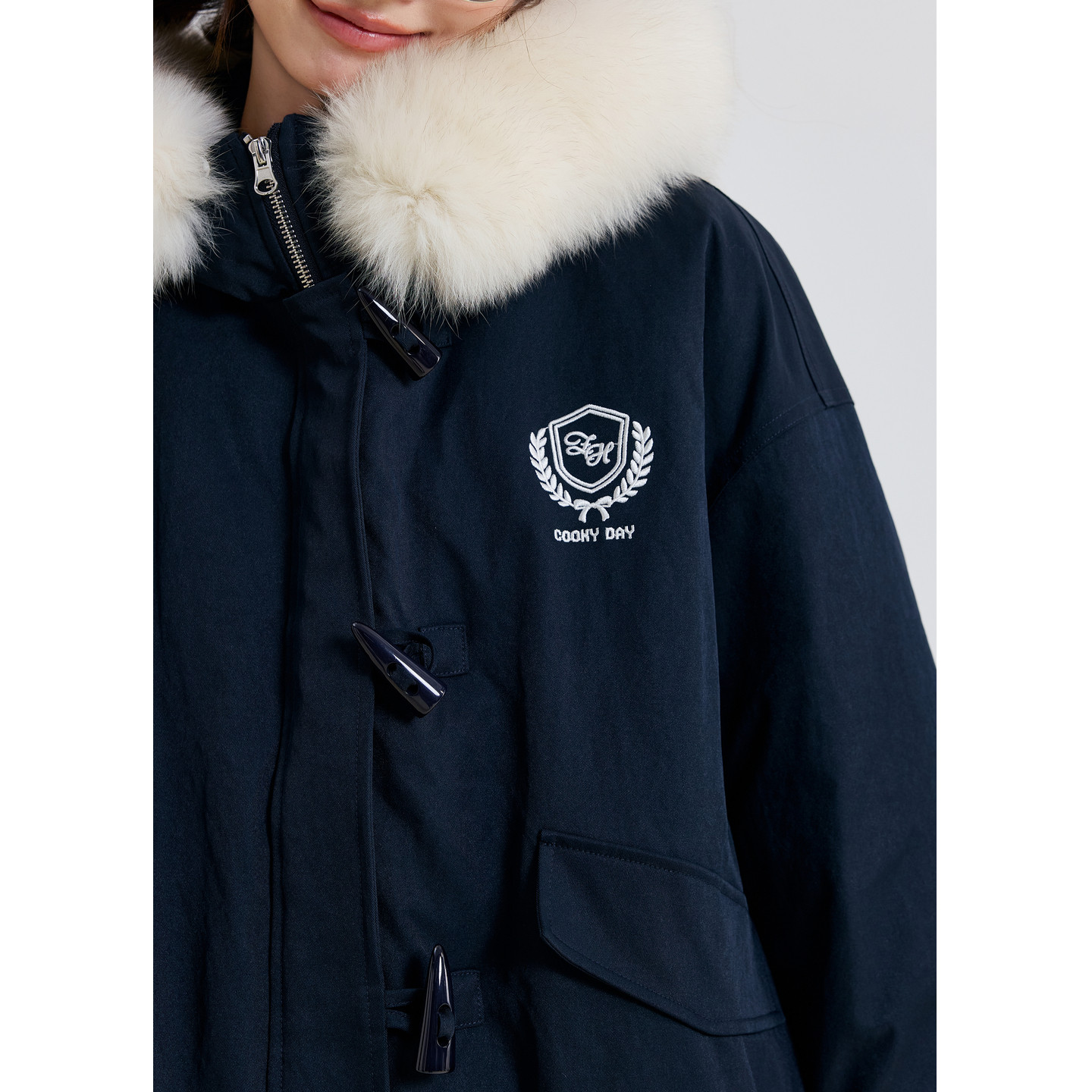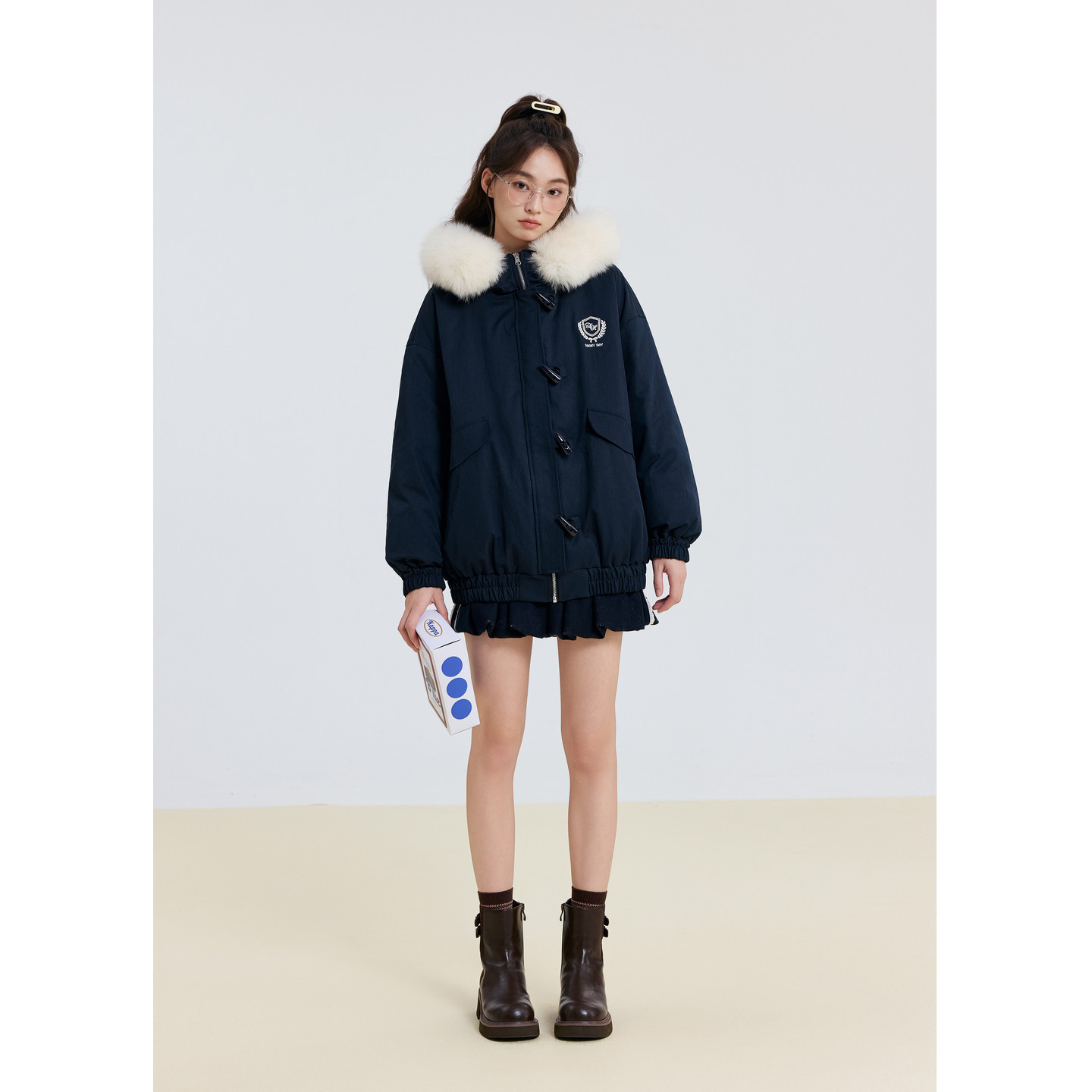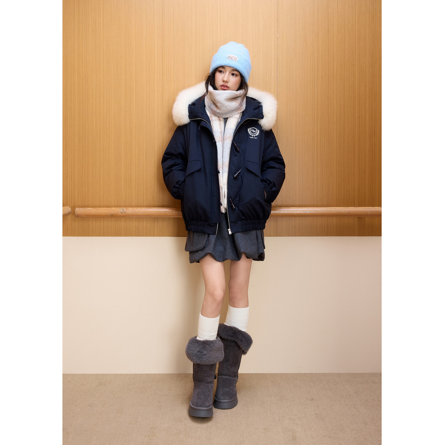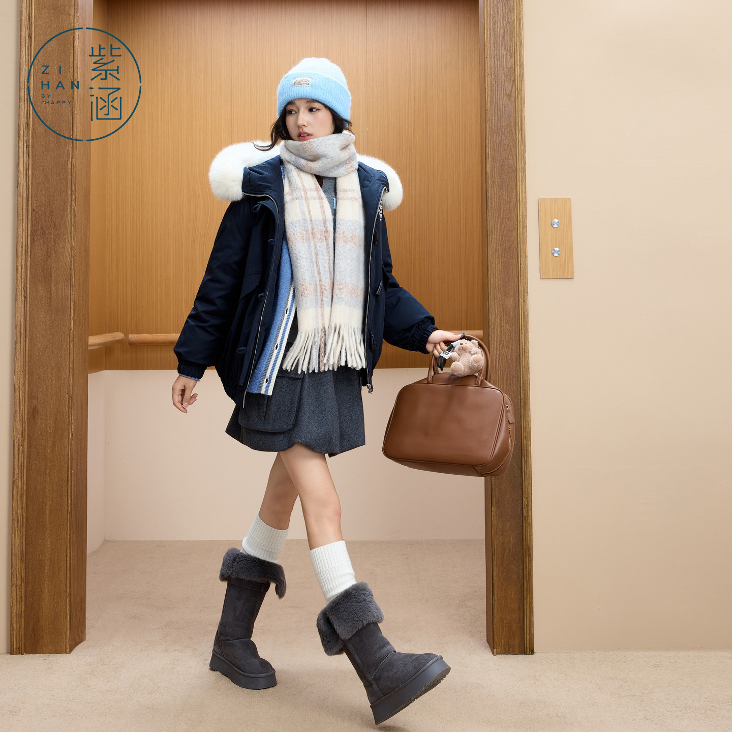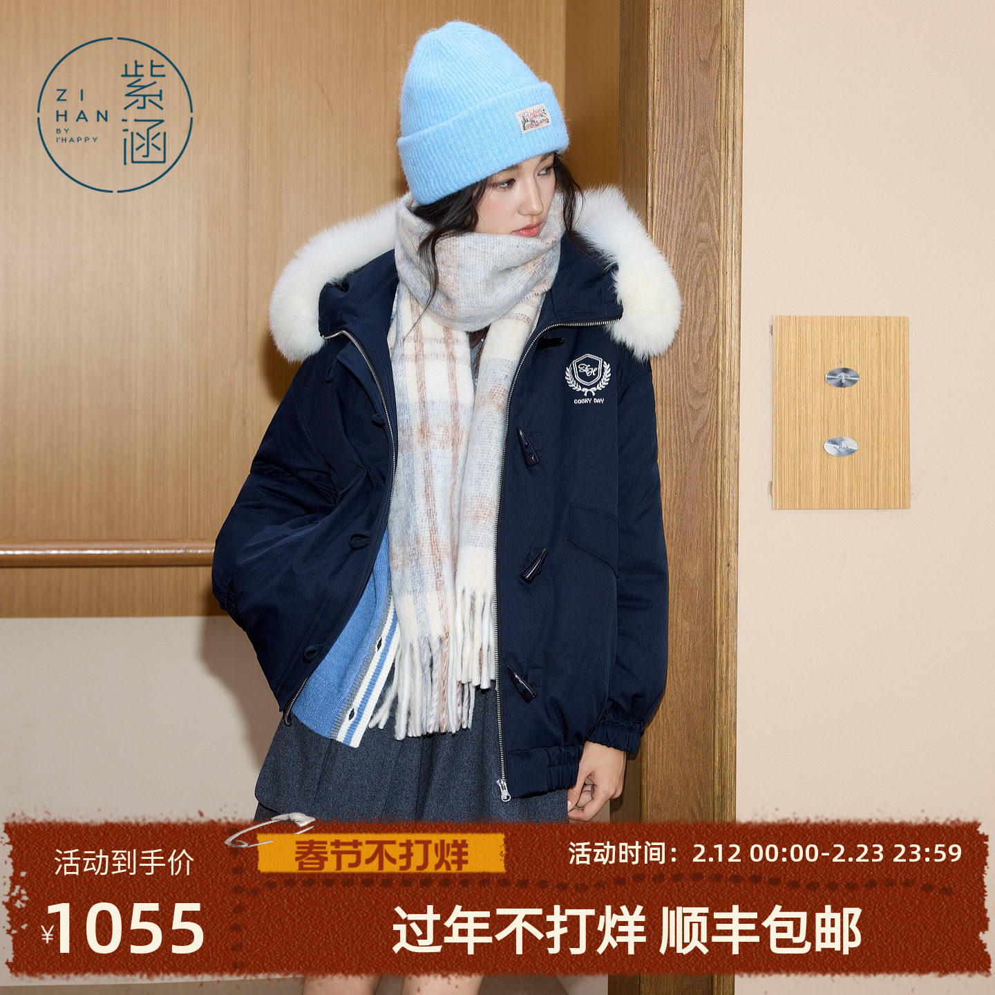 📚 紫涵狐狸毛领连帽羽绒服女2025年冬季新款学院风宽松轻薄鸭绒外套