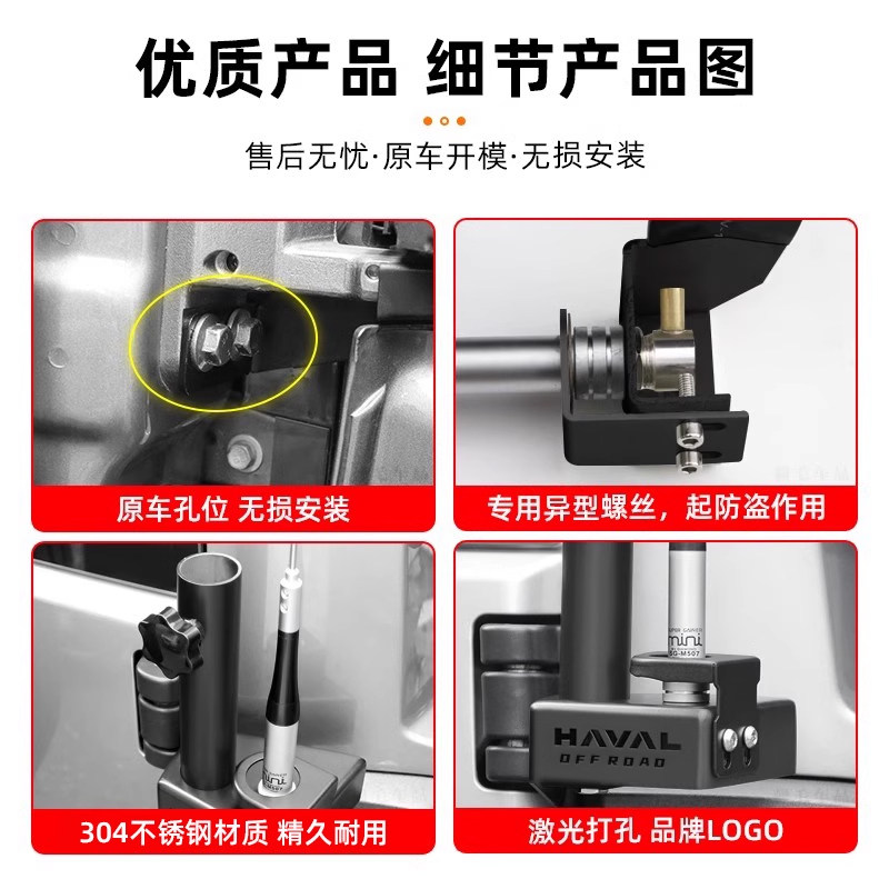 📚 适用哈弗猛龙尾门旗杆架改装多功能天线支架防盗底座夹边越野装饰