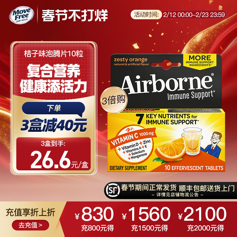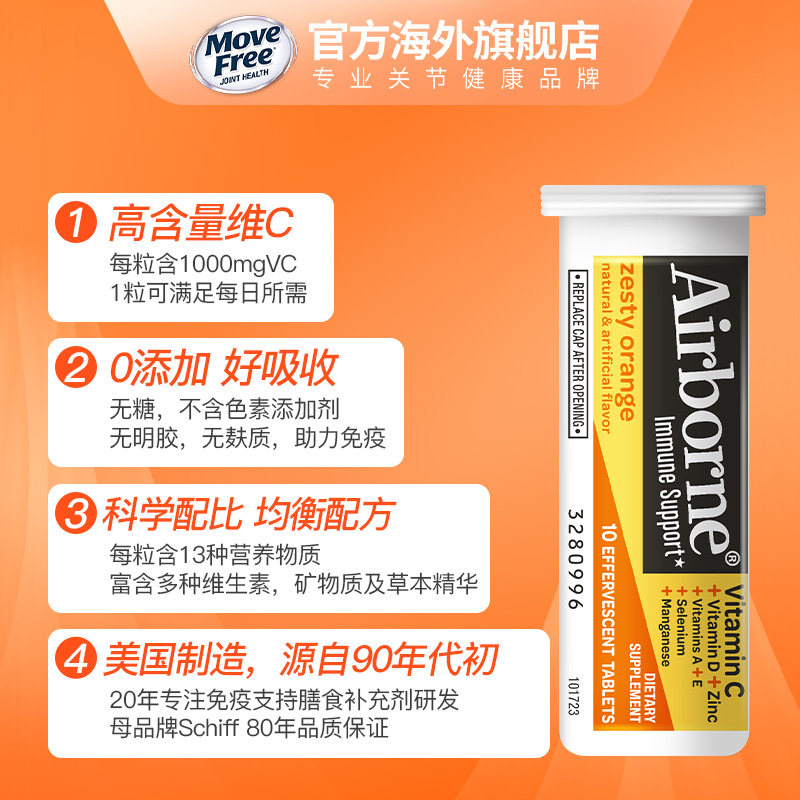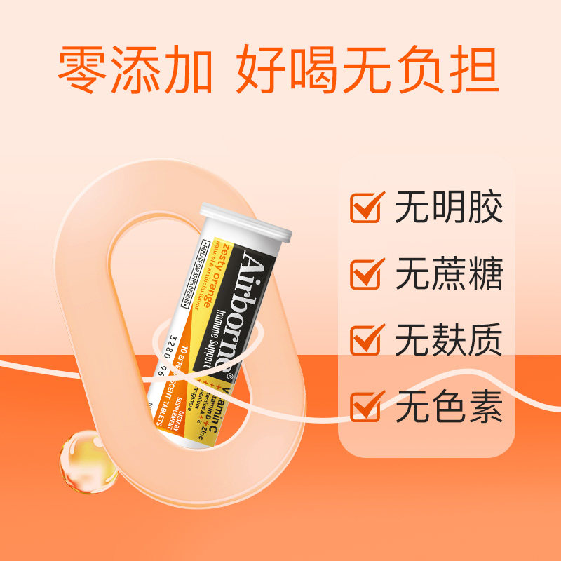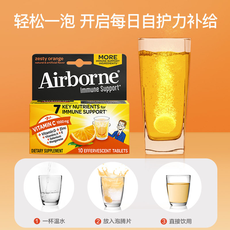 📚 Airborne泡腾片复合vc片维生素c泡腾泡片成人维他命桔子味10粒