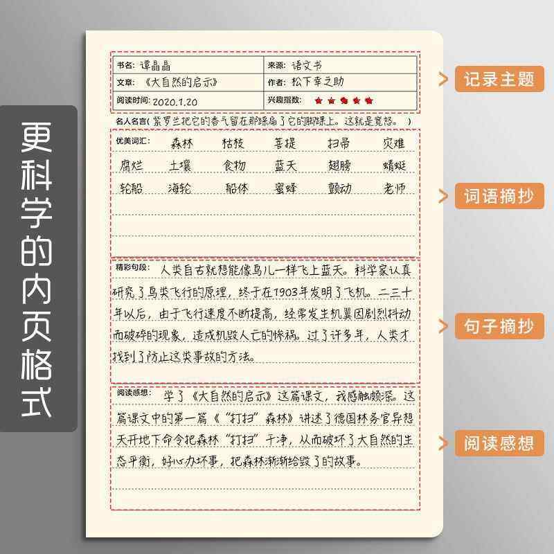 📚 读书笔记本子课外阅读摘抄本A5初中生小学生用心得阅读笔记录本B5心得摘记好词好句摘抄本日积月累