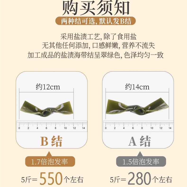 📚 海带扣小海带结干货 新鲜商用厚无沙5斤整箱嫩盐渍 霞浦特产