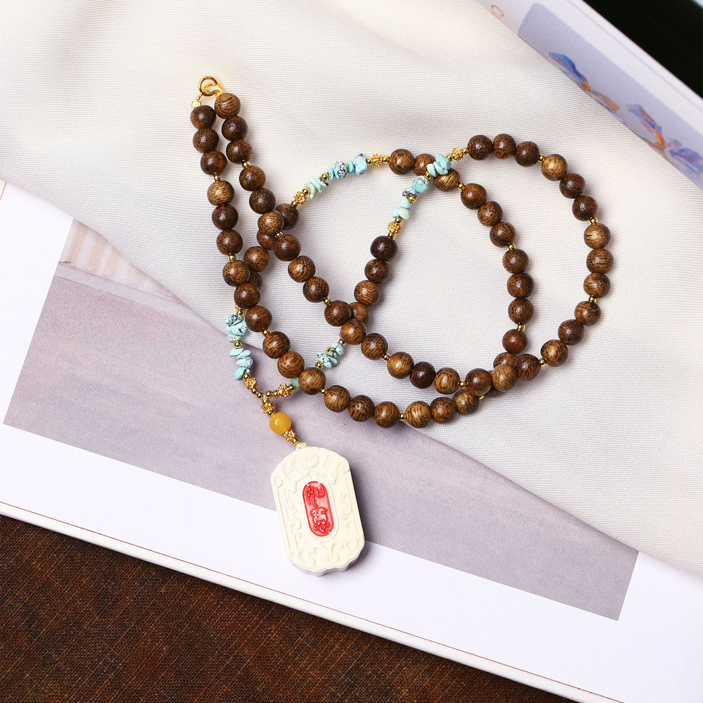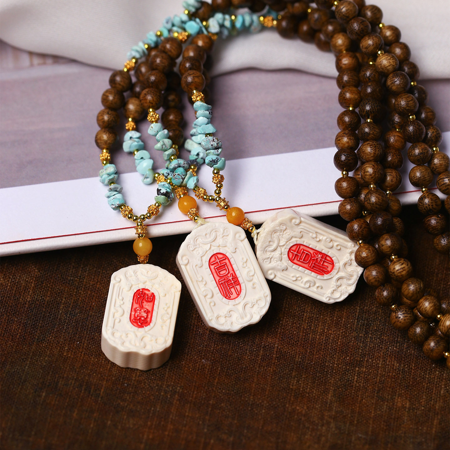 📚 天然猛犸象牙雕刻吉象如意方牌款吊坠男女款文玩猛犸牙毛衣链挂坠