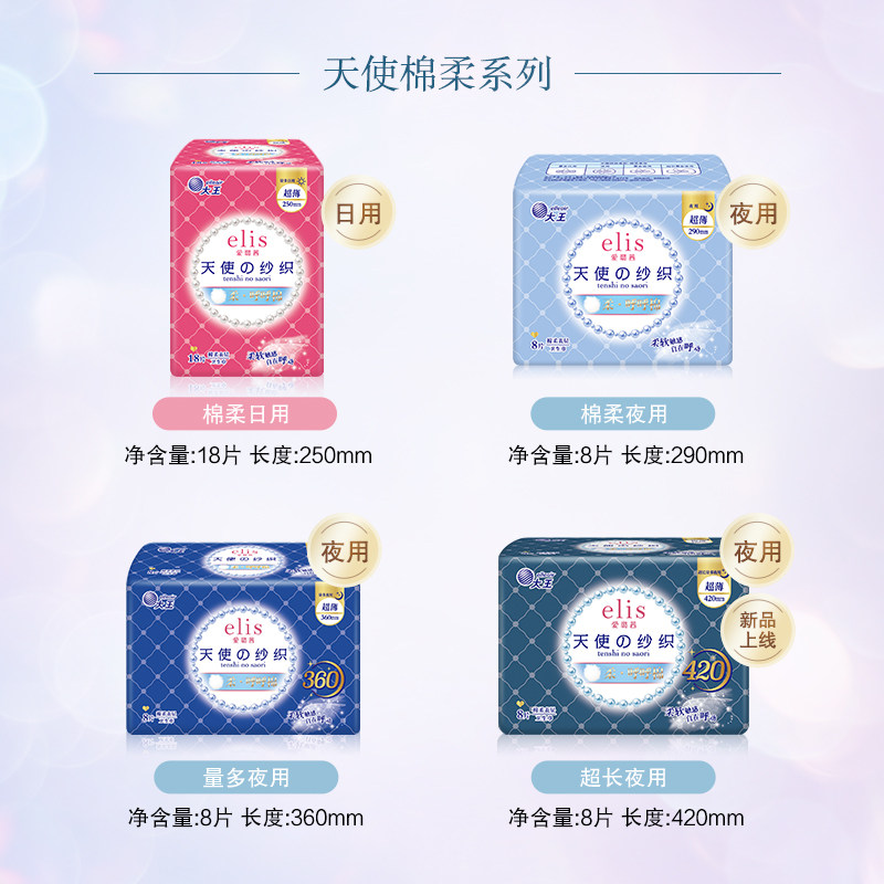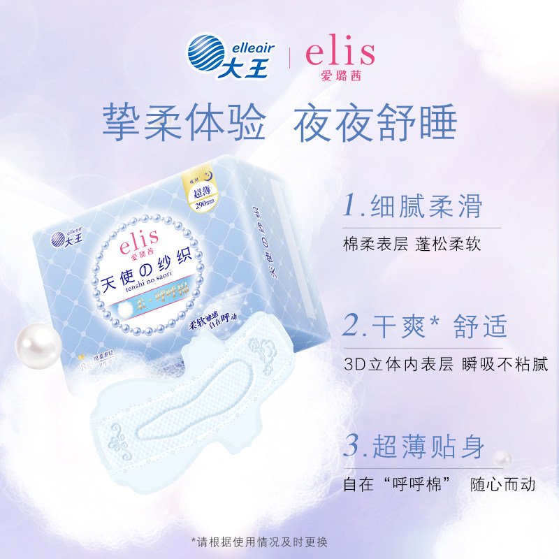 📚 【新国标】大王elis爱璐茜天使纱织夜用卫生巾290mm8P超薄棉柔