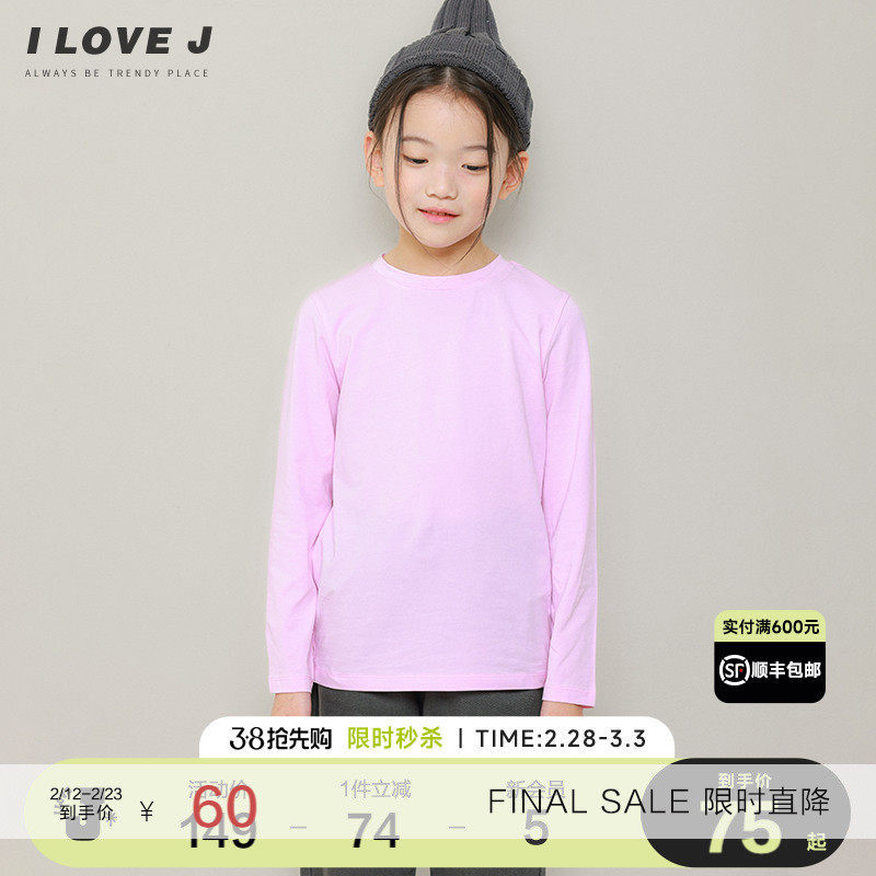 📚 ILOVEJ童装基本款弹力T恤儿童秋装女童长袖打底内搭上衣/JUFTO01