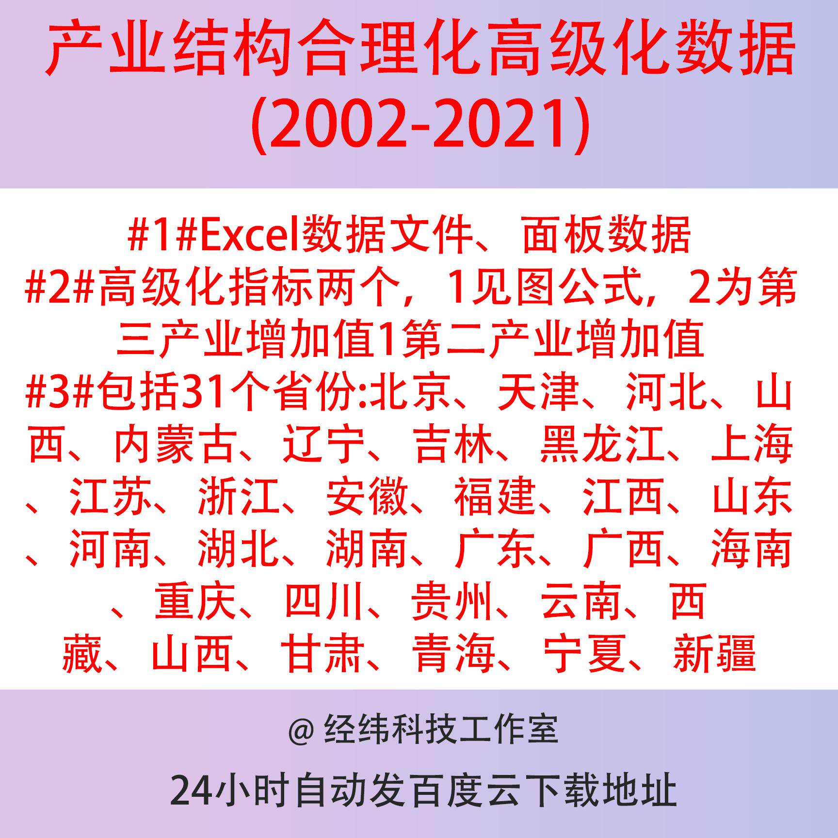 📚 产业结构合理化高级化数据(2002-2021) 一个合理化,两个高级化