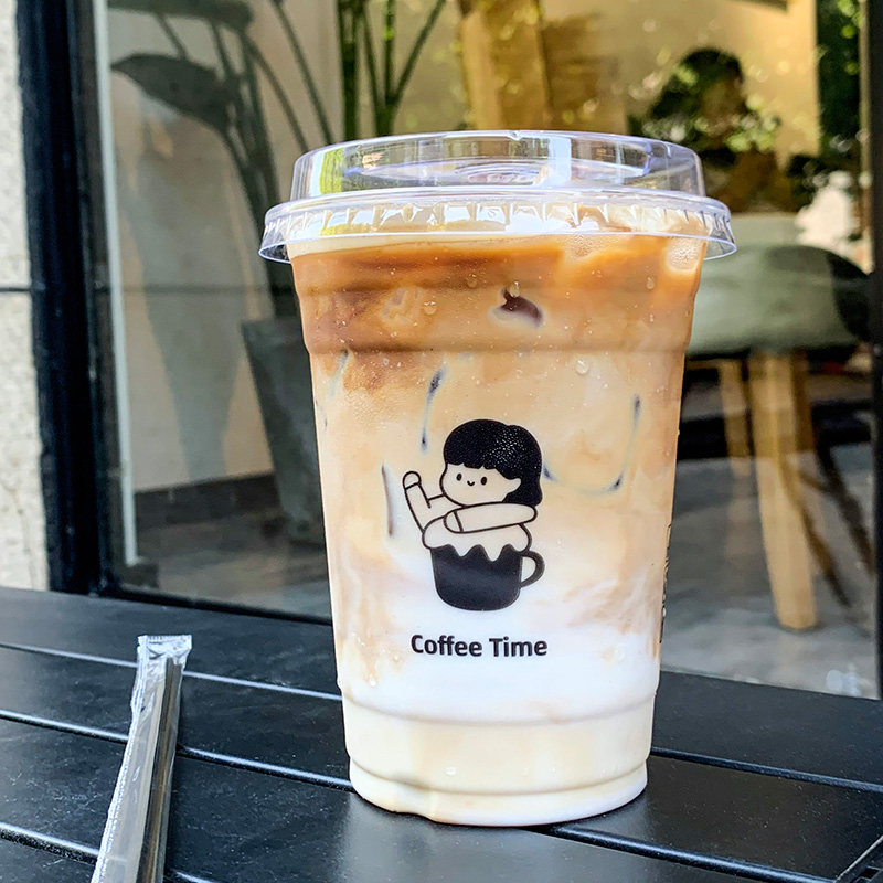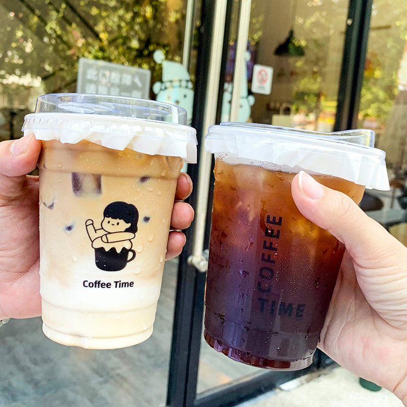 📚 一次性加厚高透PET塑料冷饮咖啡奶茶生椰拿铁带盖98口径定制杯子