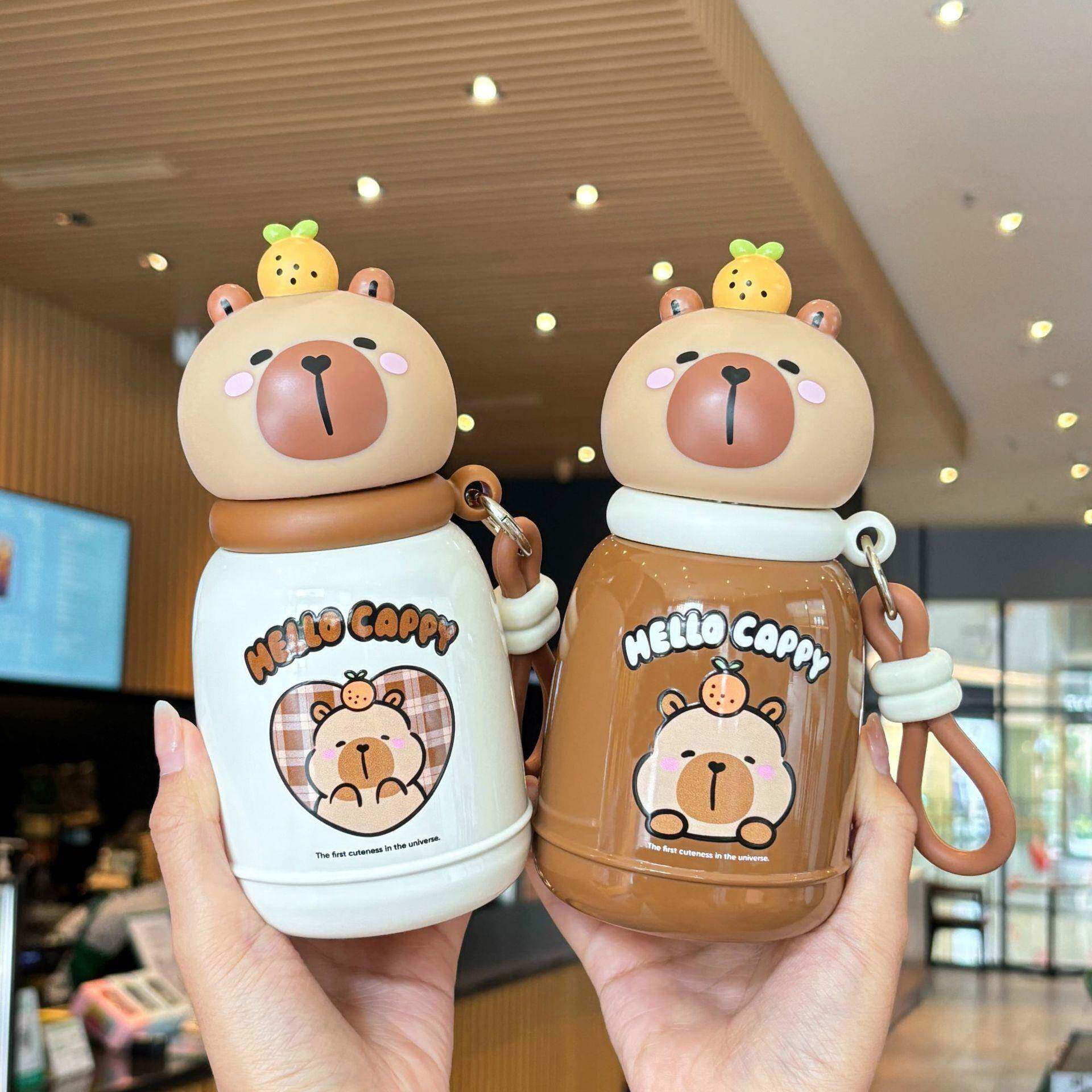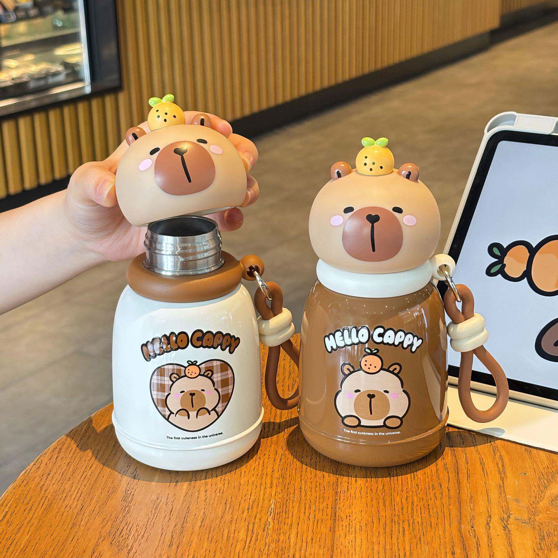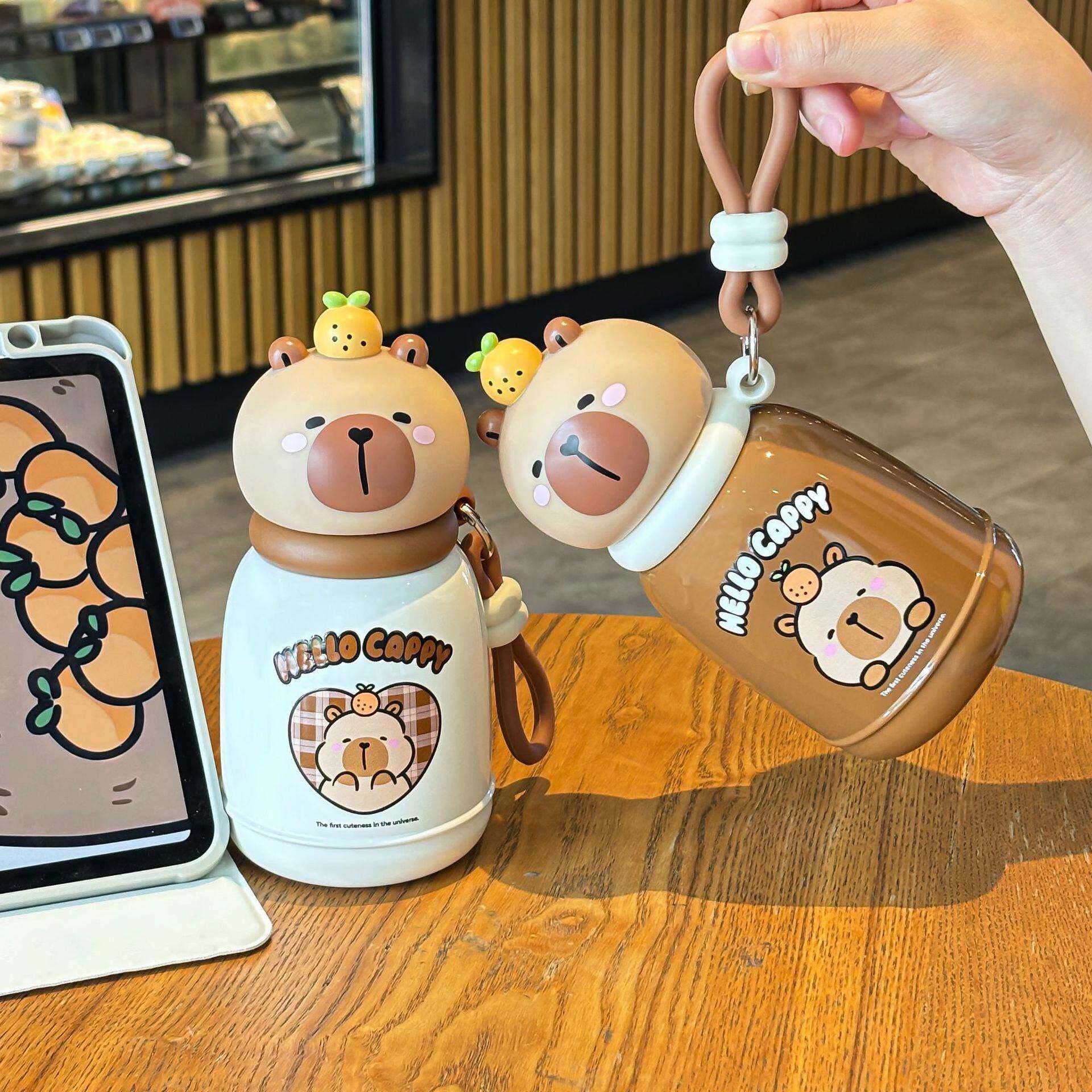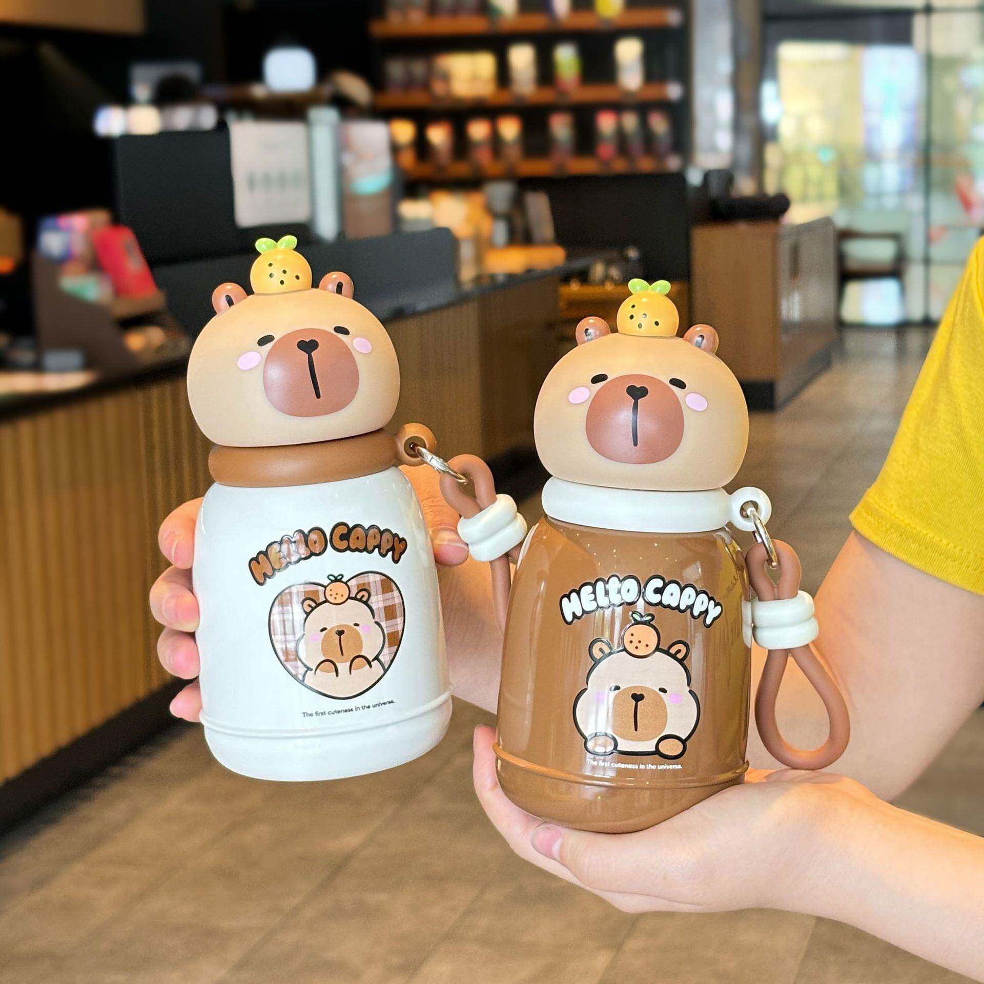 📚 卡皮巴拉可爱搪胶学生高颜值胖胖杯坚固提环携带方便直饮口保温杯