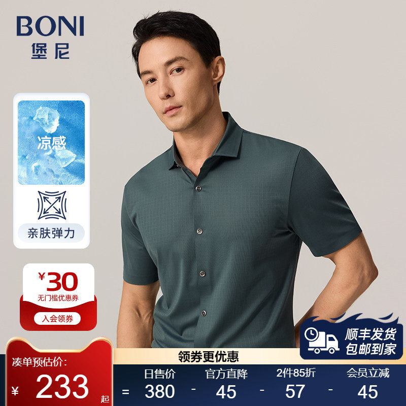 📚 BONI/堡尼新品商务短袖衬衫时尚修身男衬衣休闲格纹上衣GN340B71B
