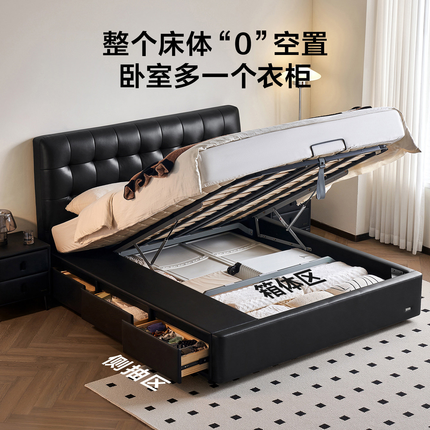 📚 全友家居2025新款大黑牛储物双人真皮床卧室1米5单人黑色箱体床