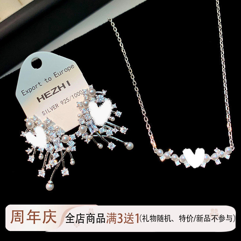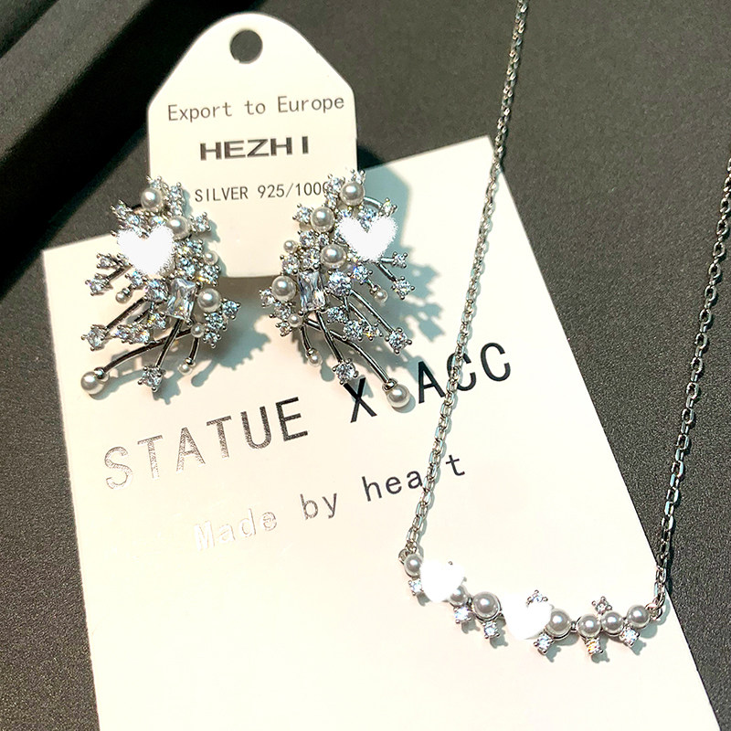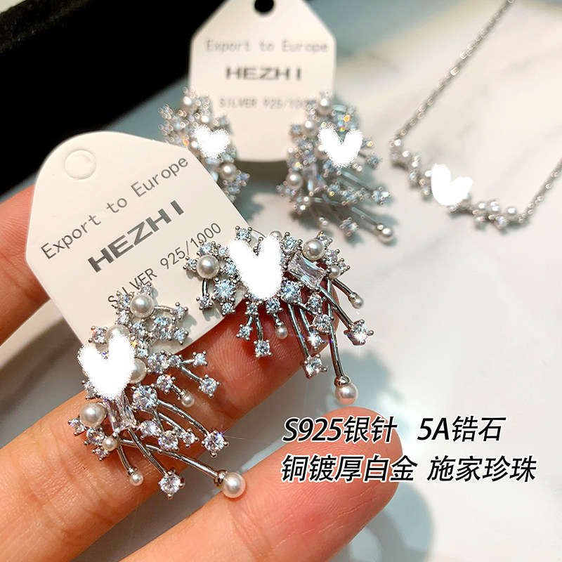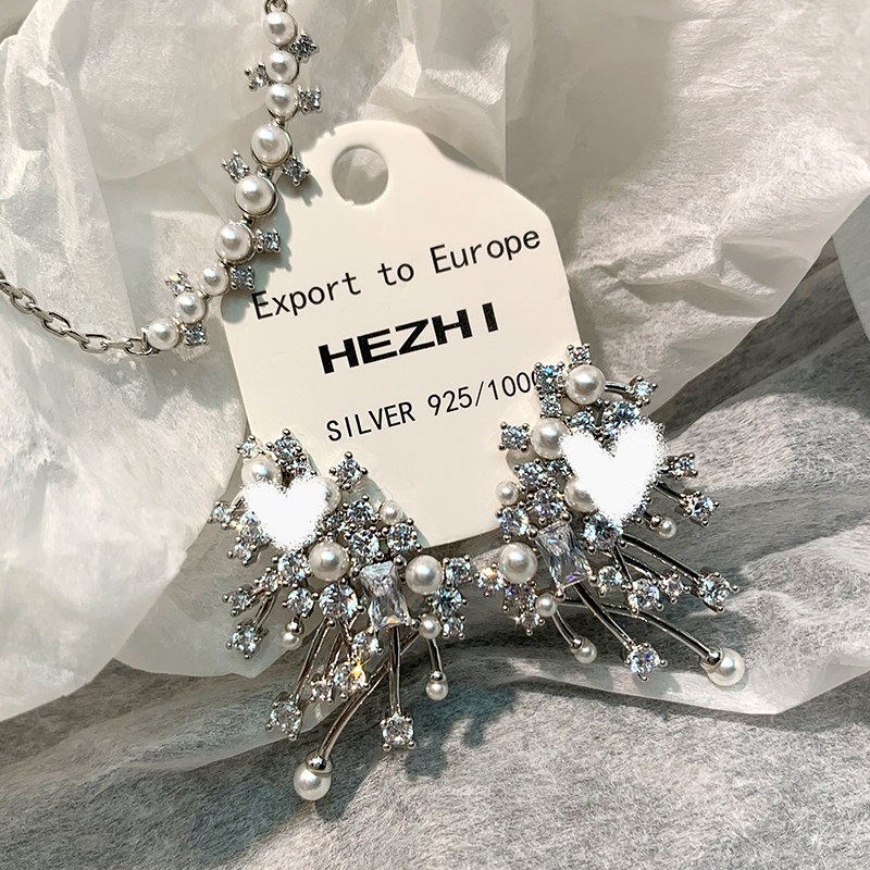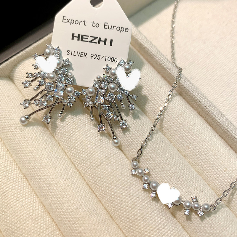 📚 刘亦菲同款星云珍珠耳环女纯银轻奢小众璀璨耳钉微笑个性气质项链