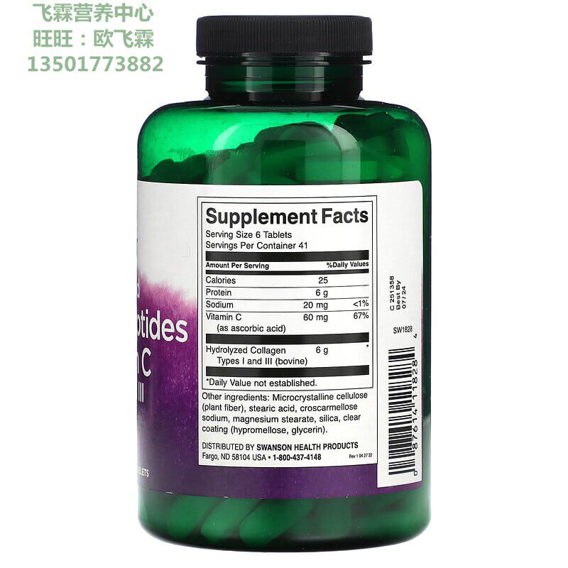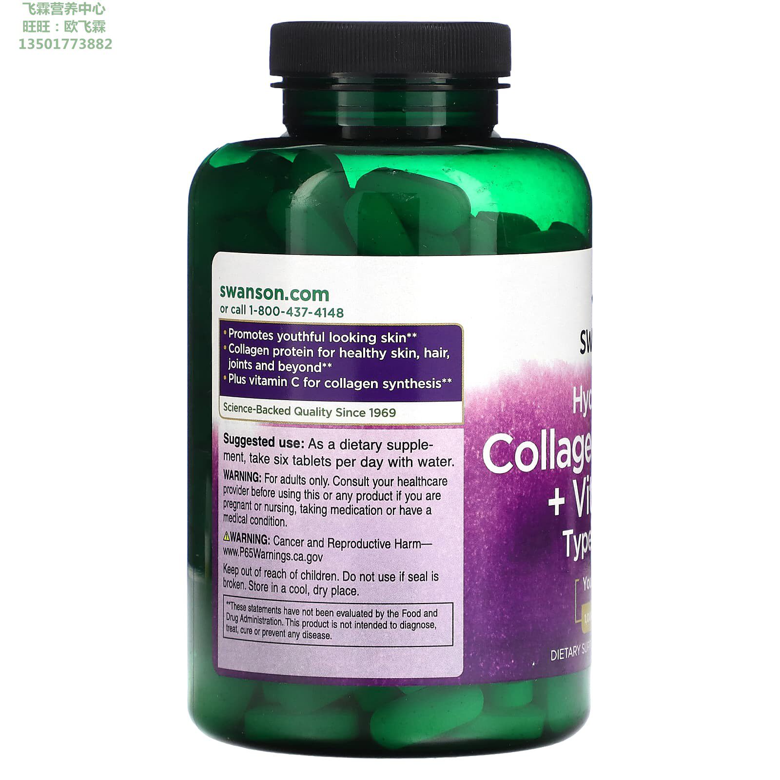 📚 美国SWANSON水解胶原蛋白肽1g250片Hydrolyzed Collagen Peptides