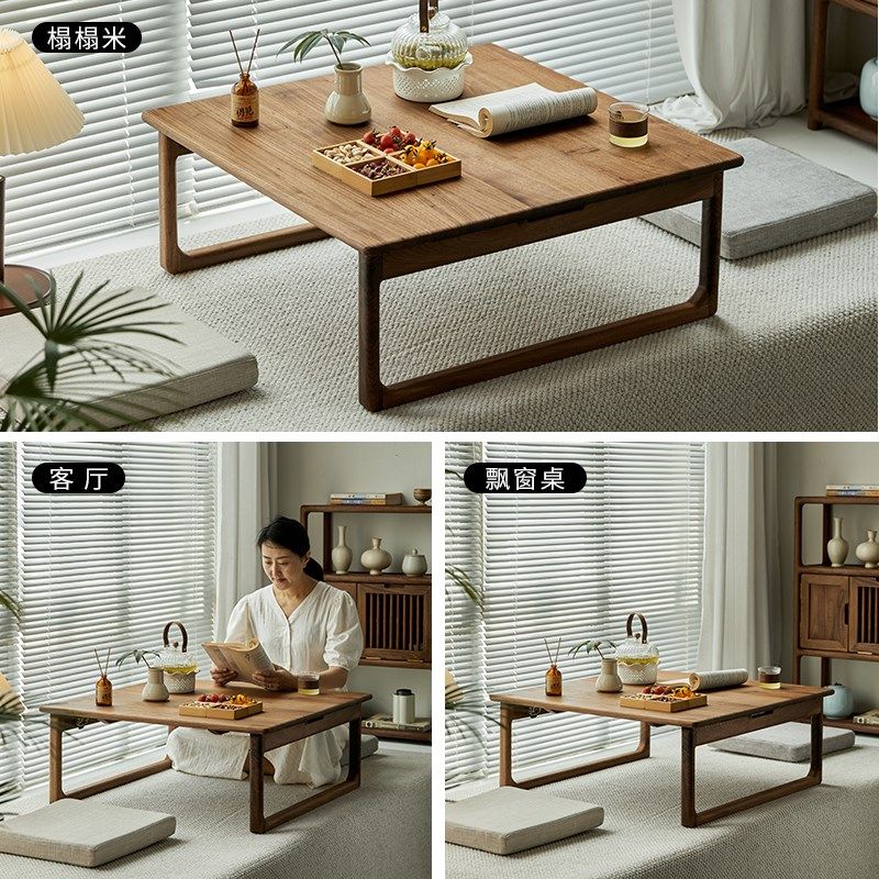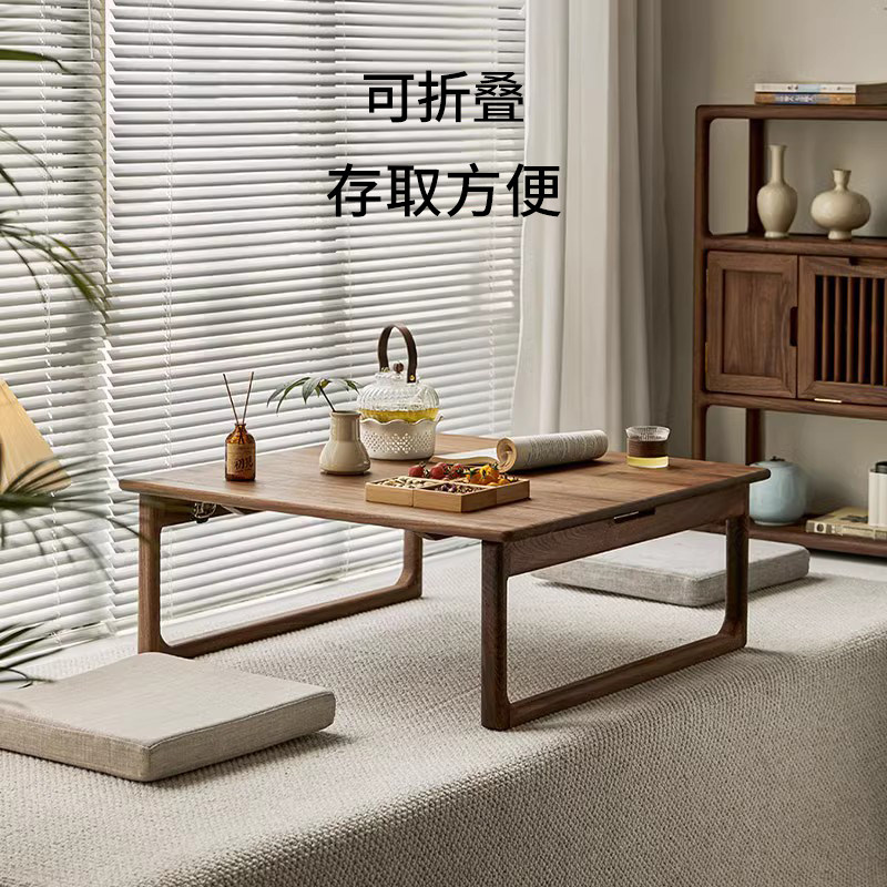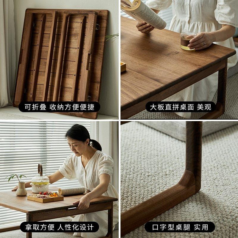 📚 小桌子可折叠小方桌飘窗茶几黑胡桃木矮桌日式榻榻米茶桌实木炕桌