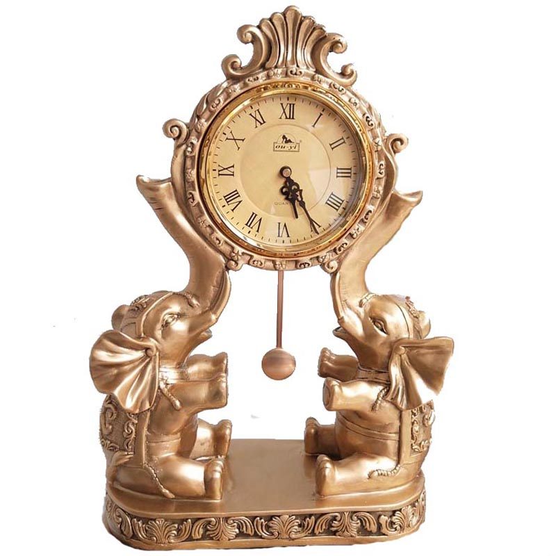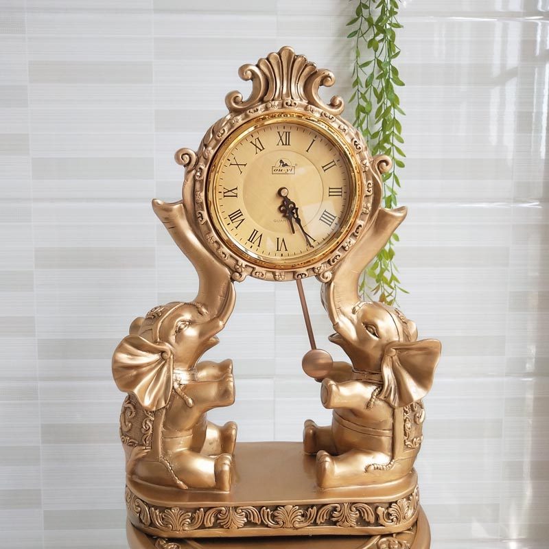 📚 客厅大象座钟创意桌面摆钟欧式复古大号家用电视柜摆件静音台式钟