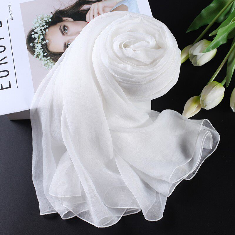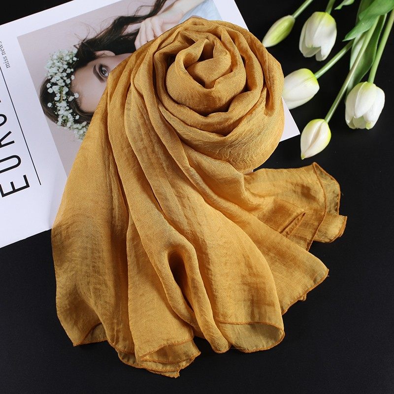 📚 纯色长款围脖轻薄飘逸纱巾女春秋冬季土黄色2025爆款丝巾防晒护颈