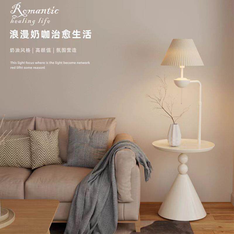 📚 奶油落地灯客厅沙发旁边置物架摆件氛围床头柜卧室一体台灯