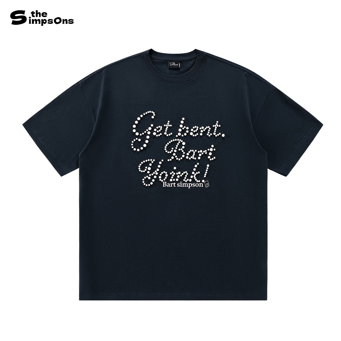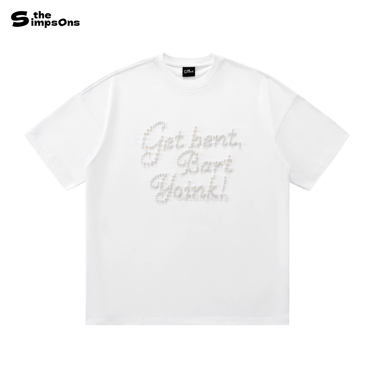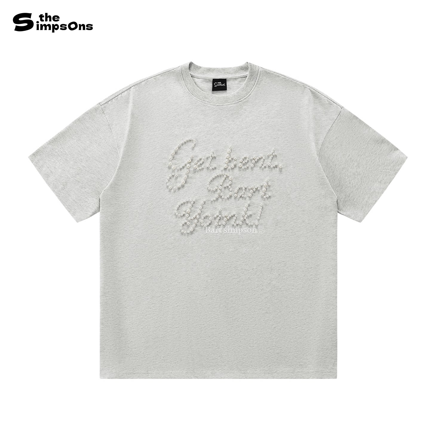 📚 【云旗同款】辛普森一家美式字母钉珠刺绣圆领宽松休闲短袖T恤