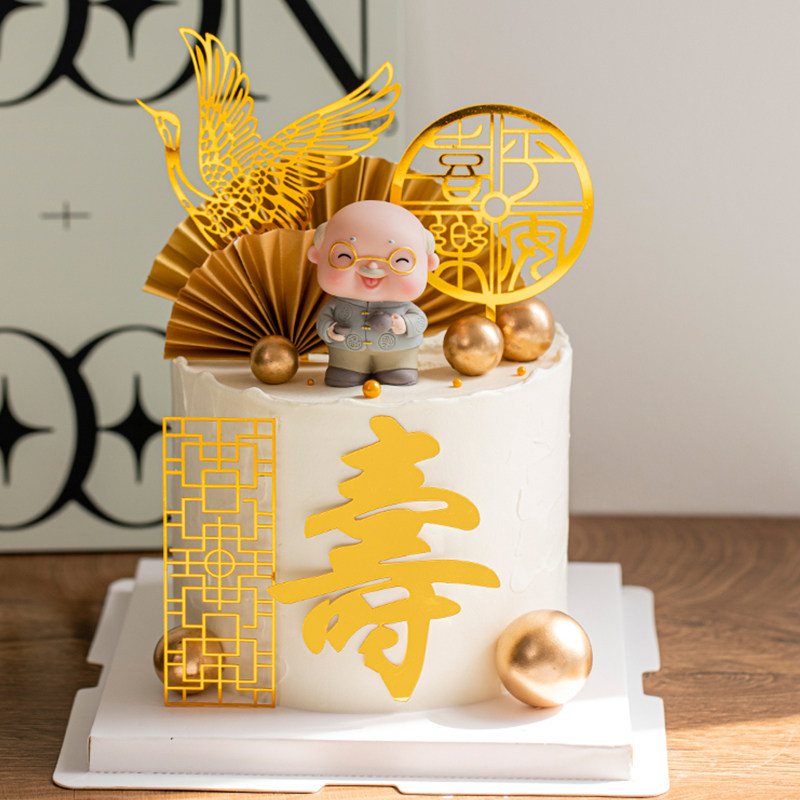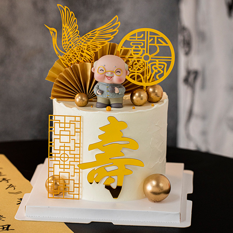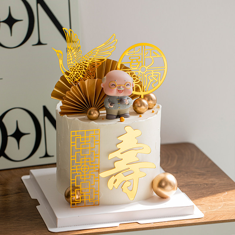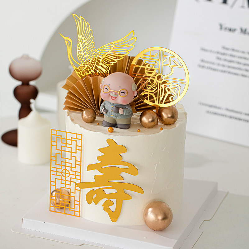 📚 平安喜乐祝寿中式蛋糕装饰插件仙鹤寿字亚克力老爷爷长辈生日插牌