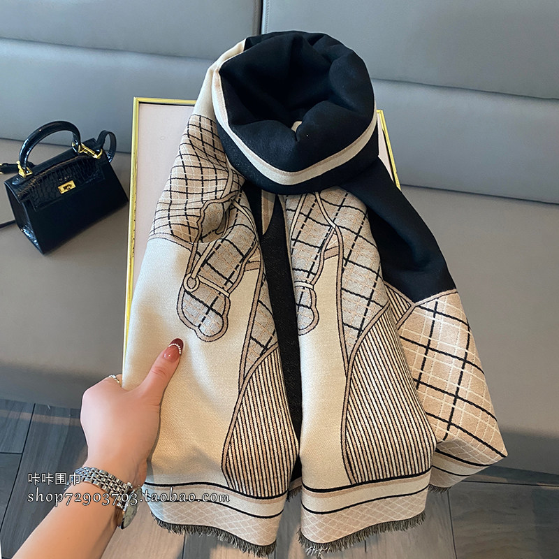 📚 镇店欧美战马仿羊绒围巾女百搭长款大披肩秋冬季双面加厚保暖围脖