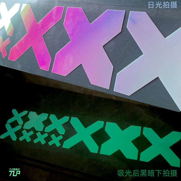 📚 TLP镂空车贴 XX 叉叉 十叉字母标志 遮痕荧光变色防水潮流贴纸