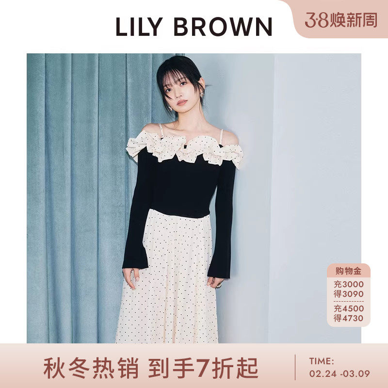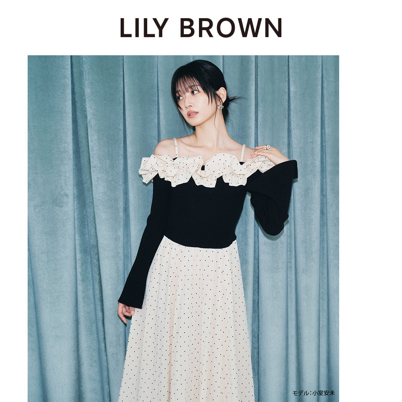 📚 LILY BROWN2025秋冬新品甜美吊带荷叶边针织拼接连衣裙LWNO255142