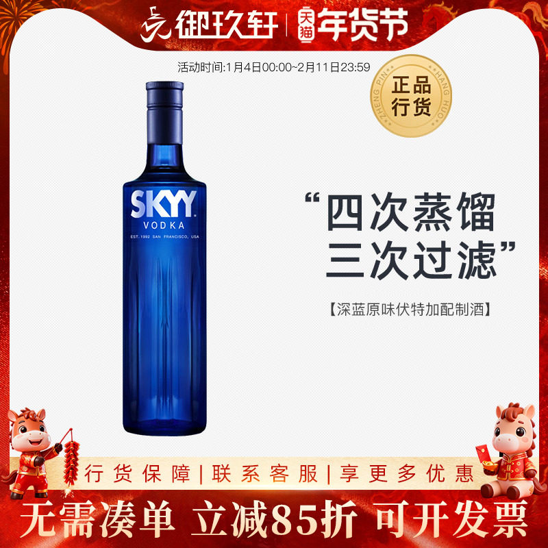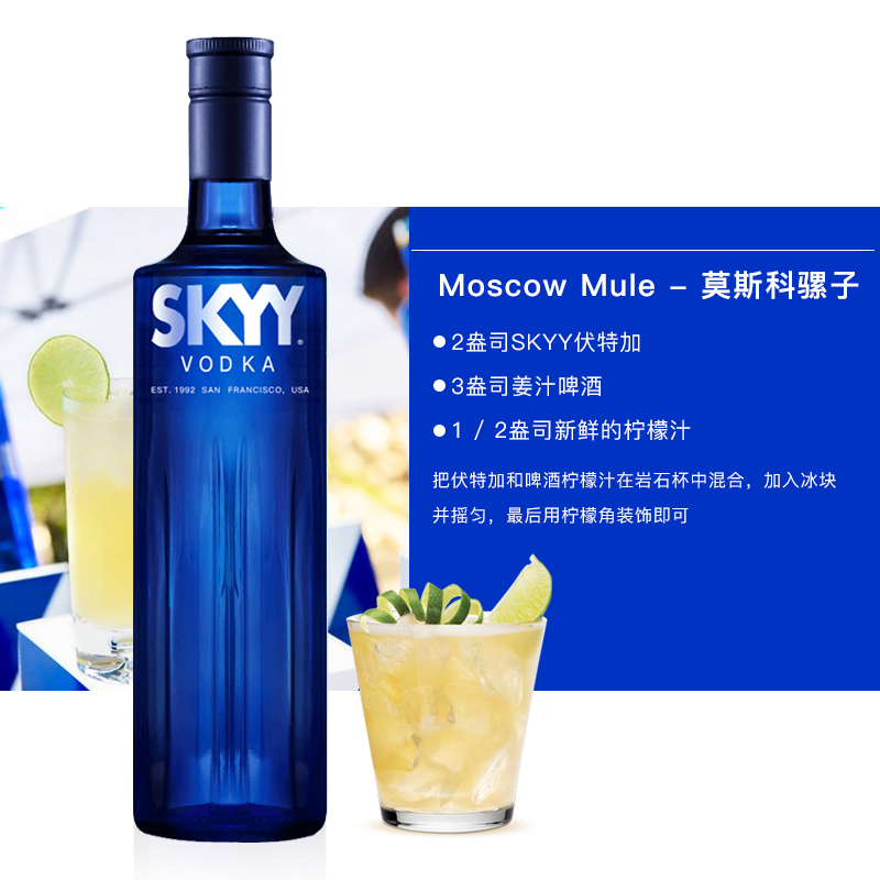 📚 御玖轩 深蓝原味伏特加skyy原味鸡尾酒基酒蓝天伏特加进口洋酒