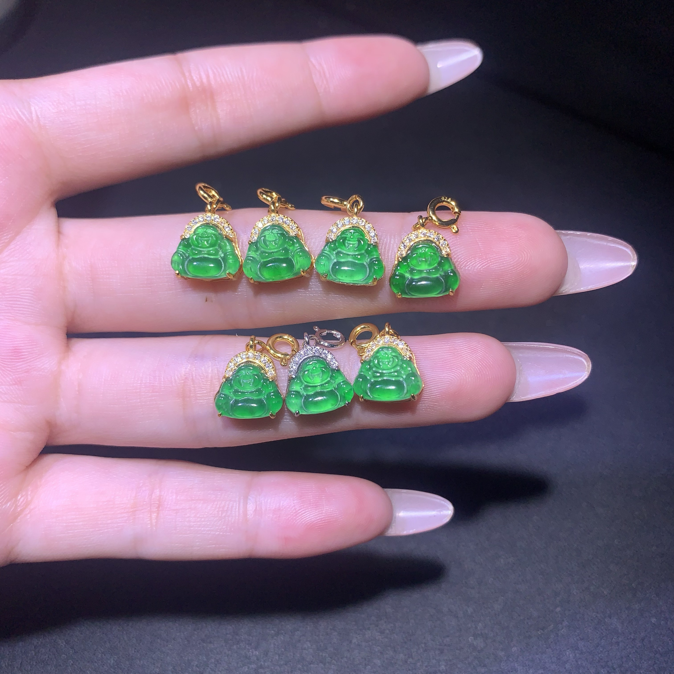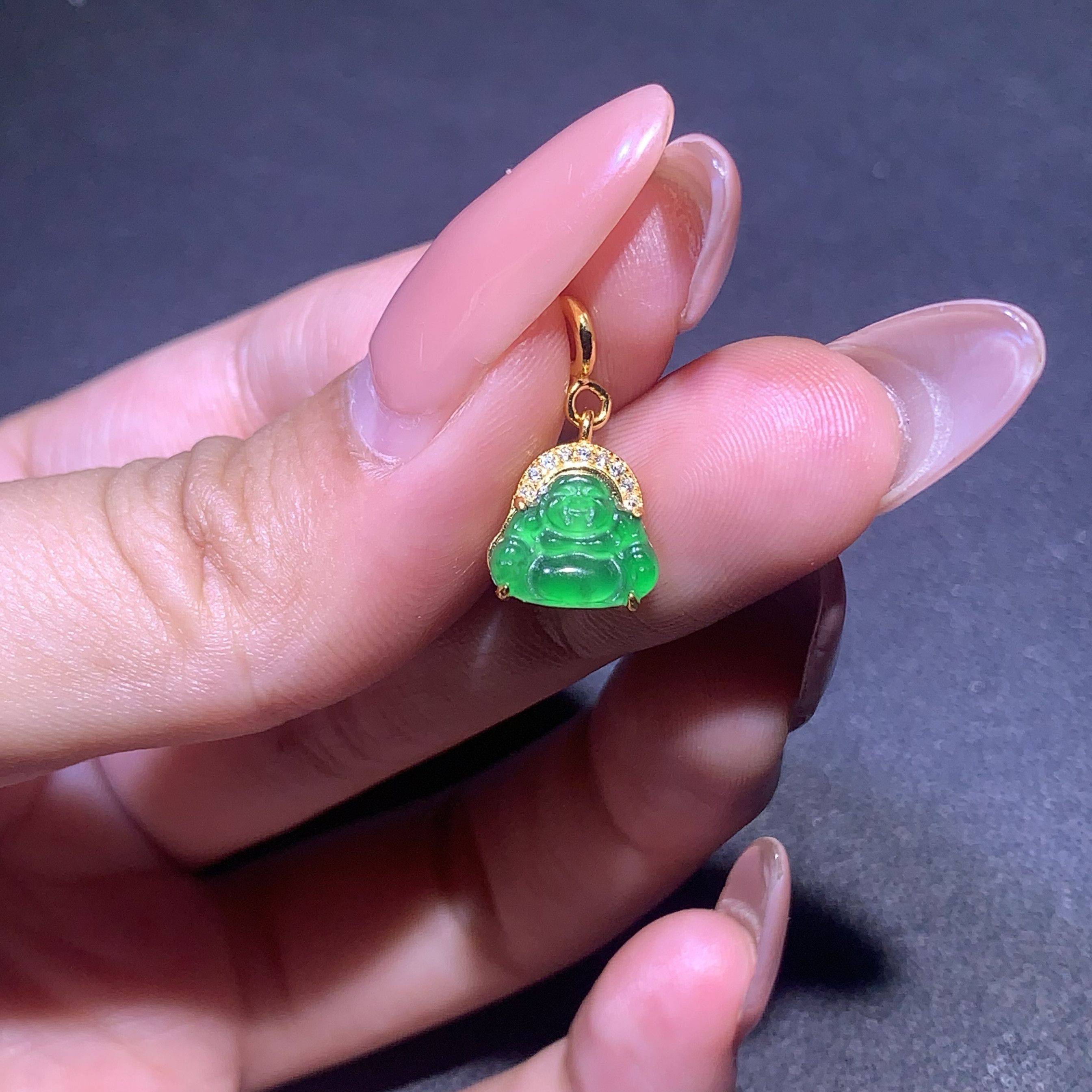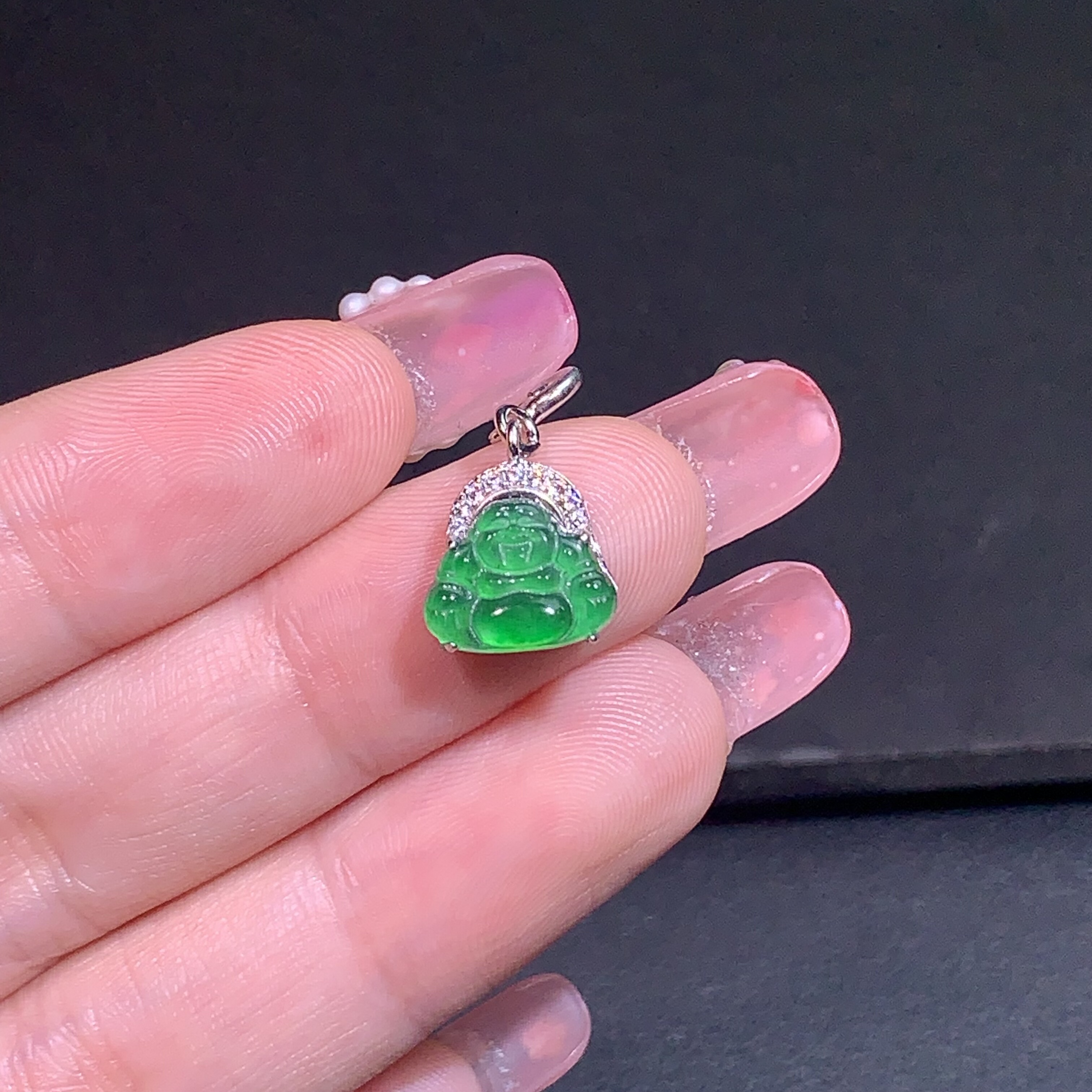 📚 马年开运小精美天然A货翡翠高冰阳绿福雅真爱玉佛公吊坠S925银镶
