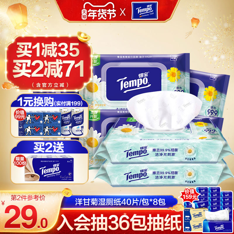 📚 tempo得宝湿纸巾8包40片洋甘菊味湿厕纸 德宝私处如厕家用家庭装