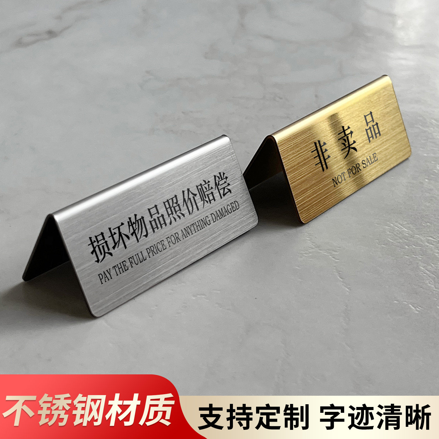 📚 非卖品仅供展示桌面提示标识立牌定制不锈钢损坏物品照价赔偿请勿触摸警示标示牌立式台牌桌牌摆台定做展示牌