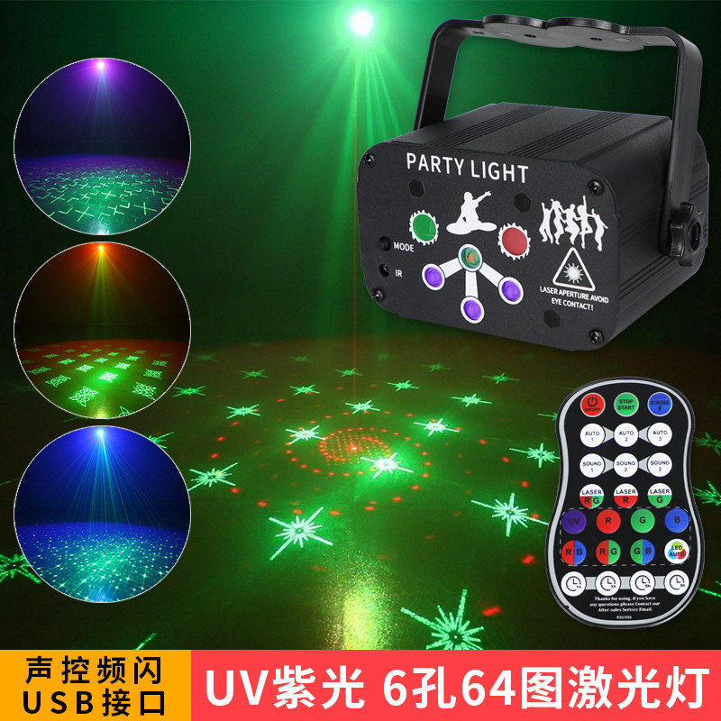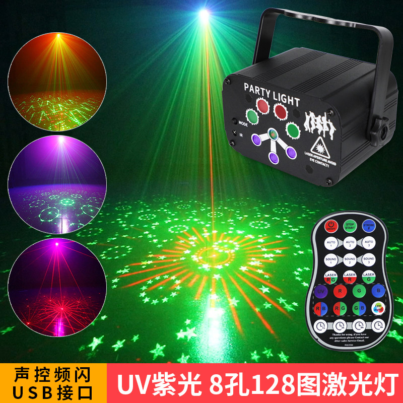 📚 充电128图案激光灯KTV闪光灯家用过节蹦迪灯爆闪七彩灯酒吧舞台灯