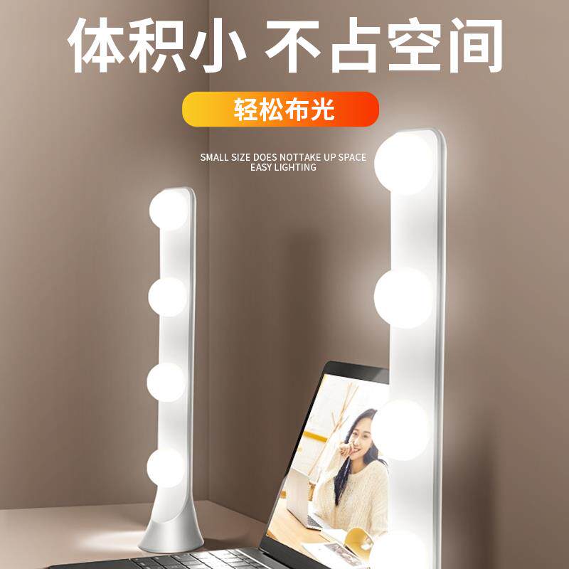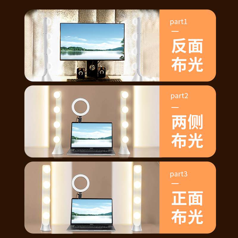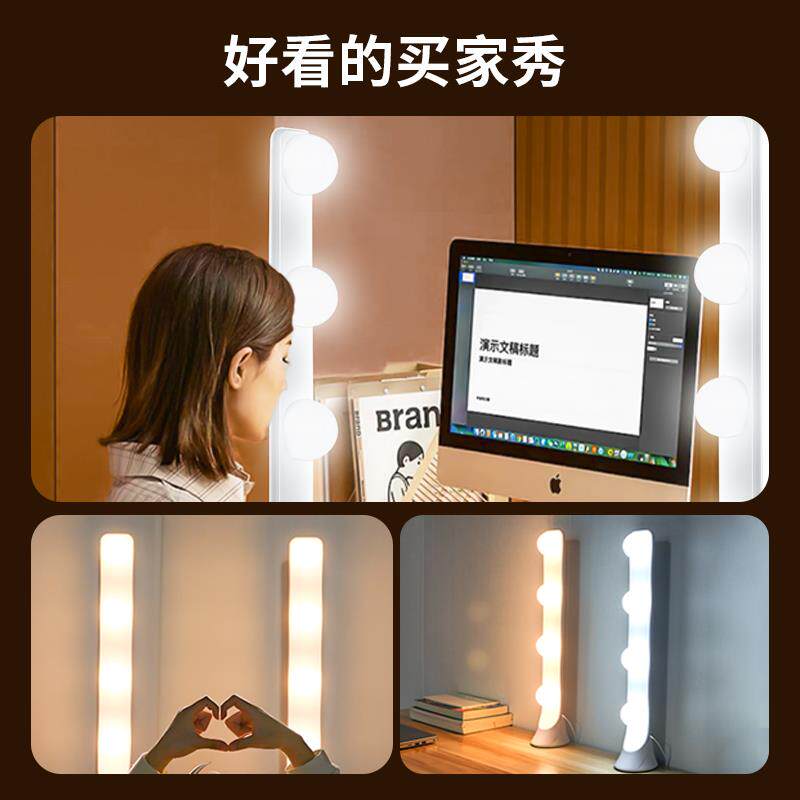 📚 桌面排灯直播补光灯主播专用美颜下巴灯视频竖排双排化妆灯泡打光台灯环形灯机位床头背面高级遥控拍摄通用