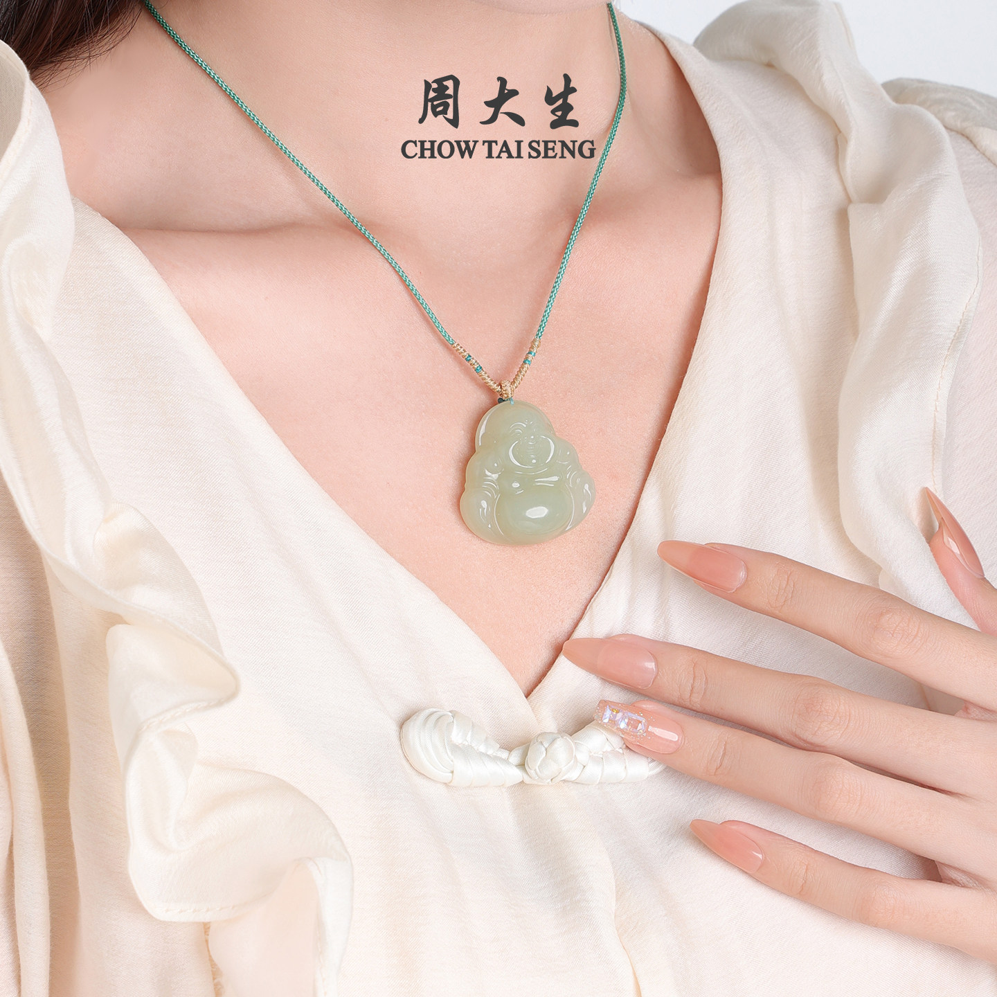 💎心动时刻!周大生天然和田玉佛公项链女平安佛挂坠,新年礼物的完美选择🎉