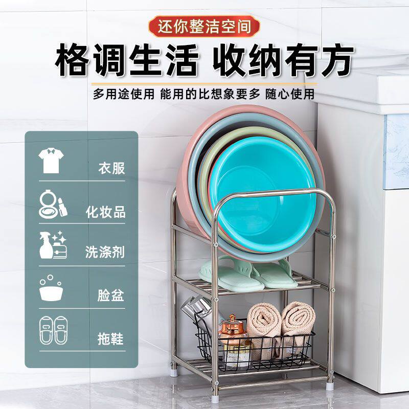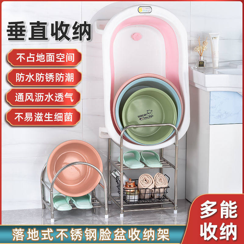 📚 洗手间不锈钢脸盆架卫生间落地多层置物架折叠大号宝宝洗澡盆架子