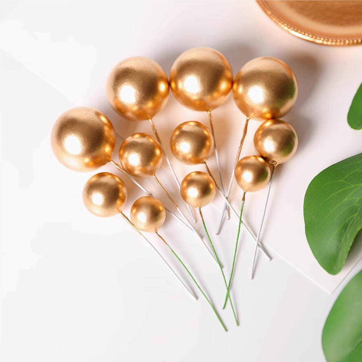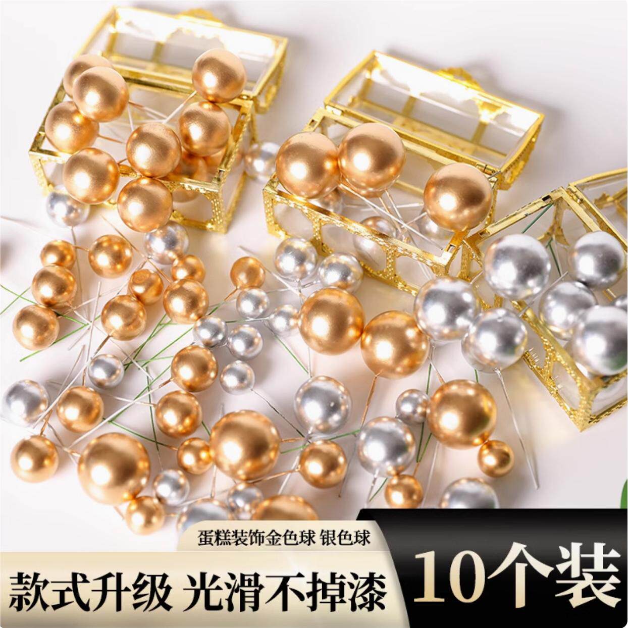 📚 金球银球生日蛋糕装饰透明球幻彩球插件金色球球装饰摆件烘焙插牌