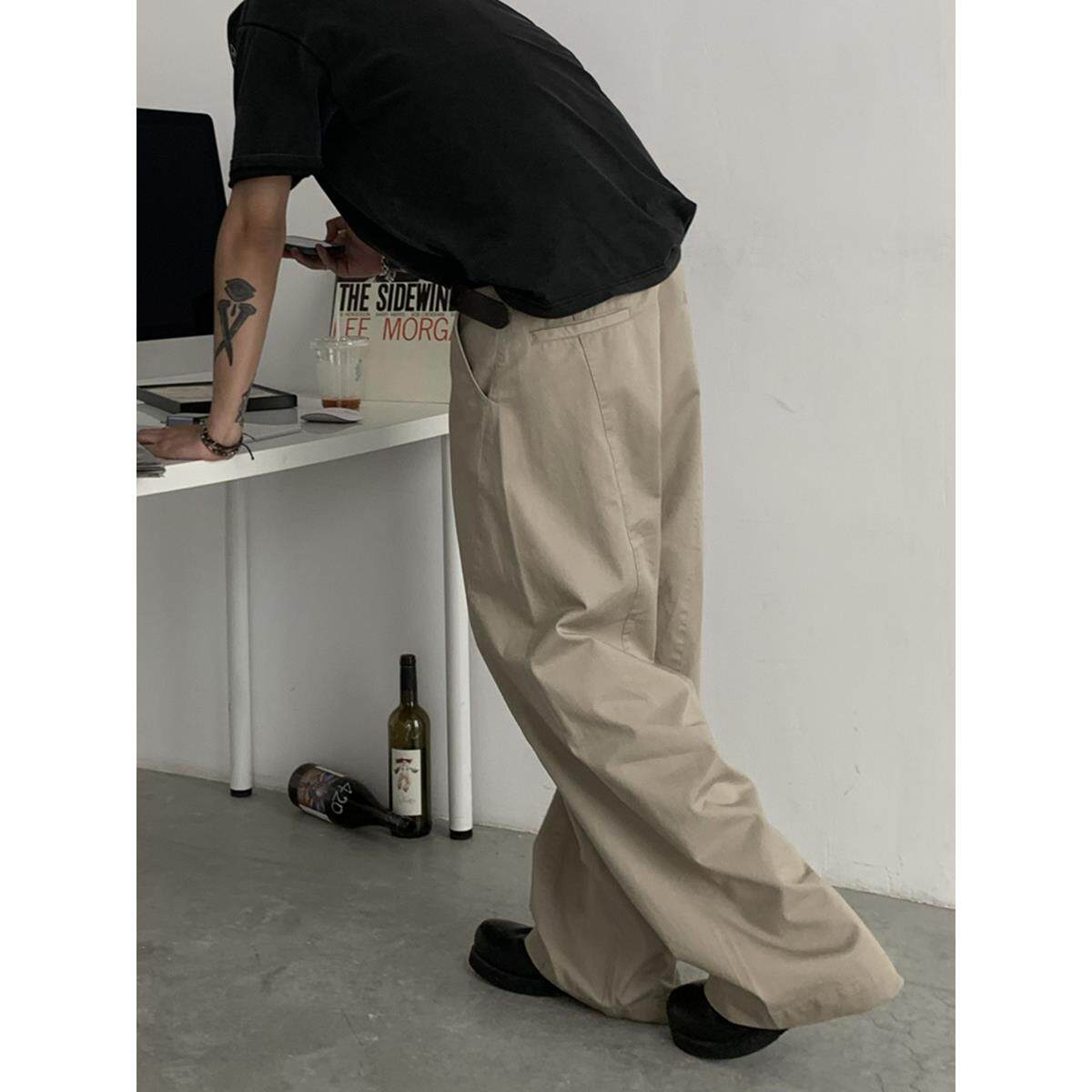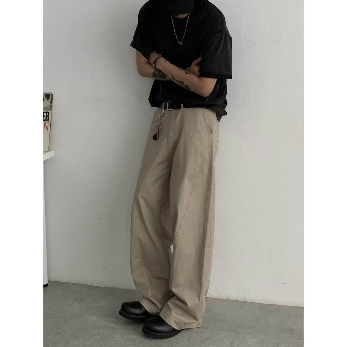📚 INKNOTS复古简约弧线拼接设计感clean fit裤子美式工装裤男女潮牌