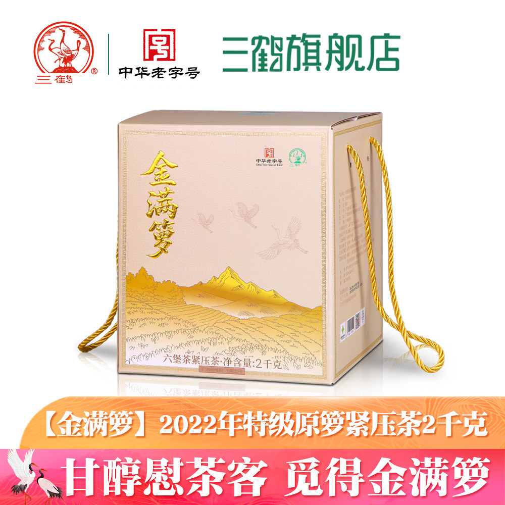 📚 三鹤六堡茶[金满箩] 2022年特级原箩紧压茶2kg黑茶广西梧州茶厂