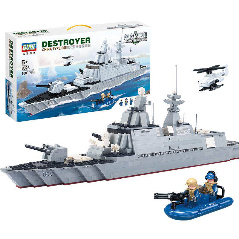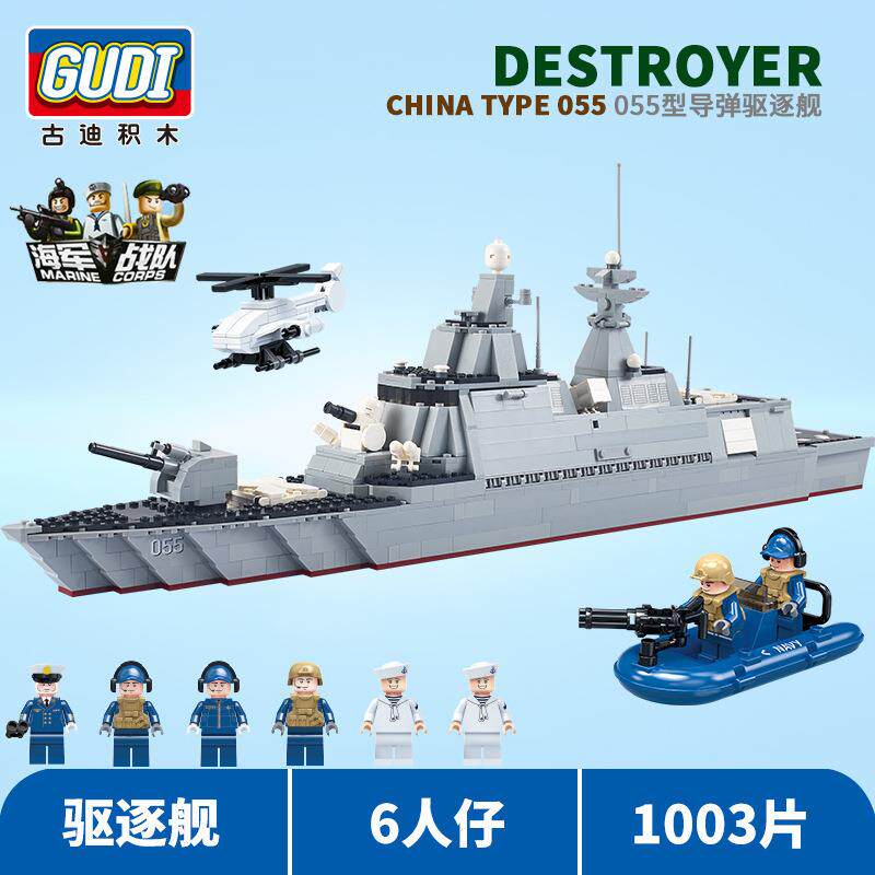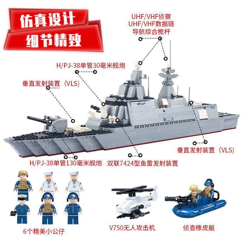 📚 8028海军055型导弹驱逐舰巡洋战舰男孩拼装军事模型积木玩具