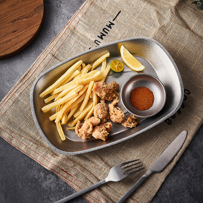 📚 复古工业风餐具牛排餐盘不锈钢托盘薯条炸鸡盘美式马口铁盘小吃盘