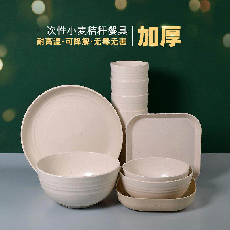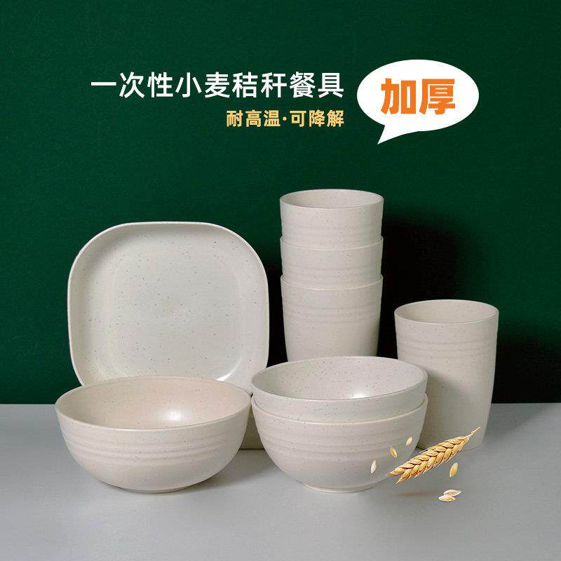 📚 麦秆可降解餐具一次性碗筷杯碟加厚盘子子火锅家用婚宴大汤碗