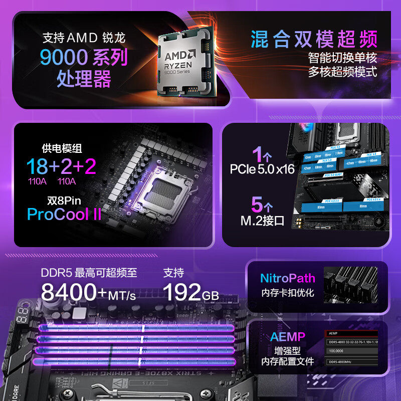 📚 华硕主板ROG STRIX X870E-E GAMING WIFI支持CPU 9800X3D/9950X3D
