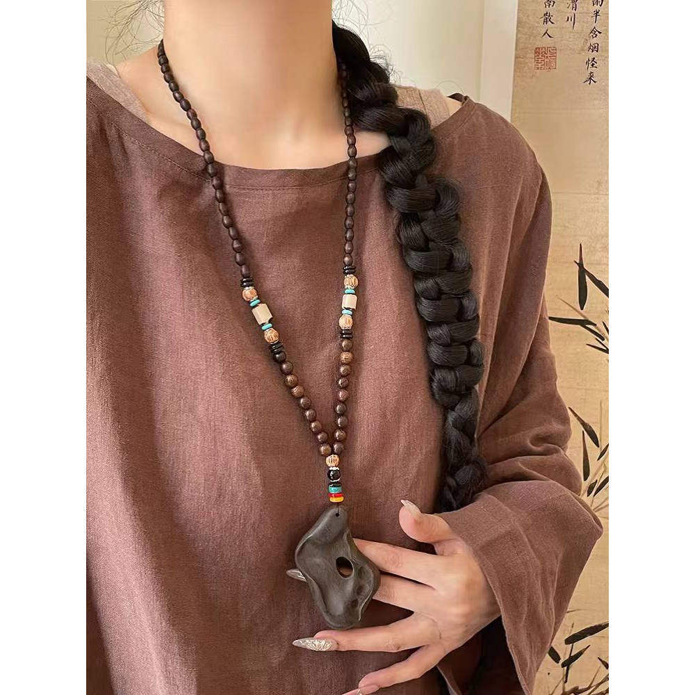 📚 中国风复古唐装汉服配饰挂饰项链长款男女新中式民族风佛珠毛衣链