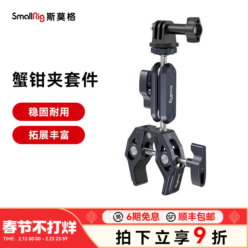 📚 SmallRig斯莫格适用DJI Aciton4/3蟹钳夹球头支架监视器怪手多功能运动相机配件螺纹大力夹碗豆夹套件3757
