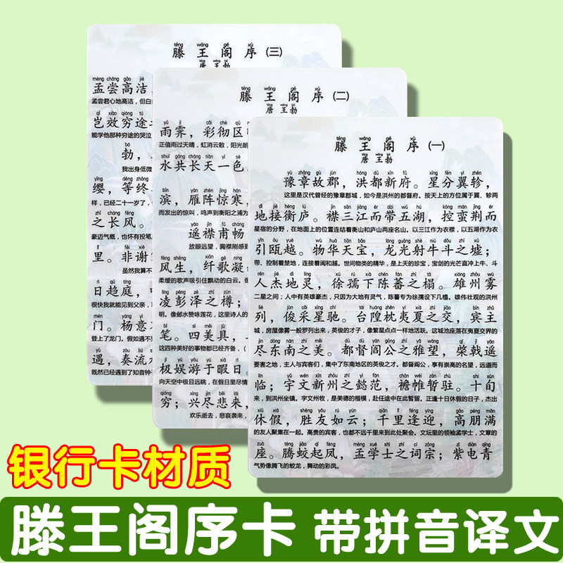 📚 滕王阁序全文注音带译文背诵卡银行卡材质出师表寒窑赋文言文小卡