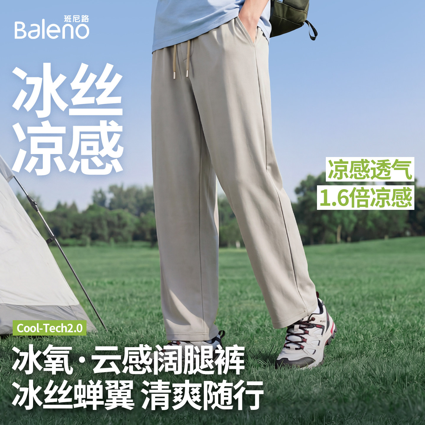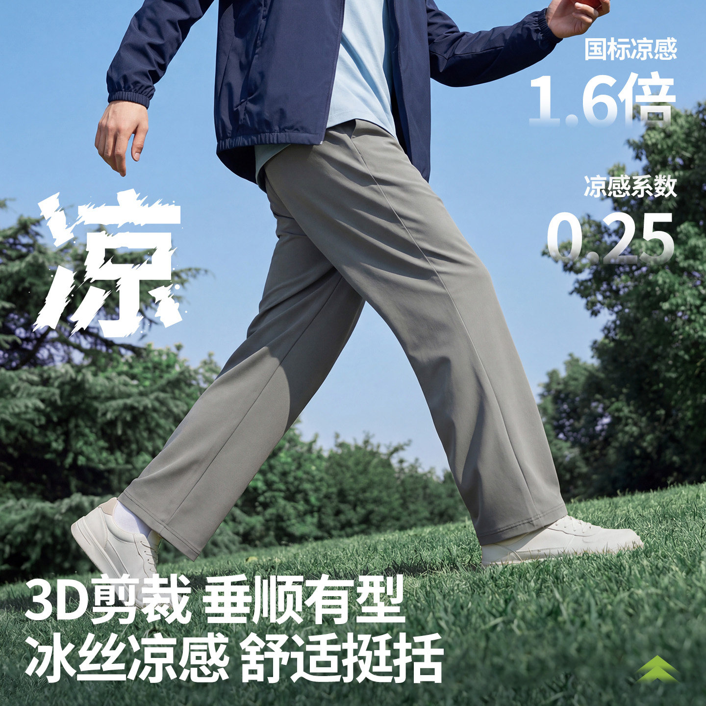 📚 班尼路夏季速干男士裤子直筒阔腿休闲长裤豆绿色弹力冰丝运动裤A
