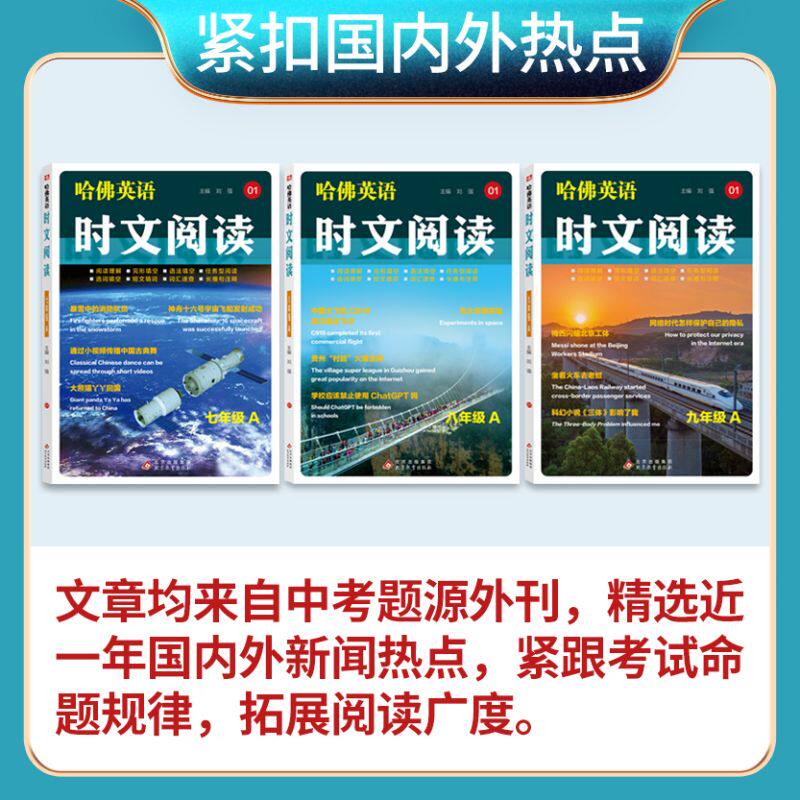 📚 2026新哈佛英语时文阅读第五四三辑789七八九年级A版01B版02阅读理解完形填空语法填空任务型阅读选词填空速查长难句注释中考热点