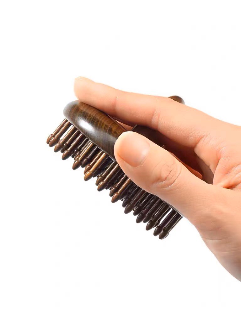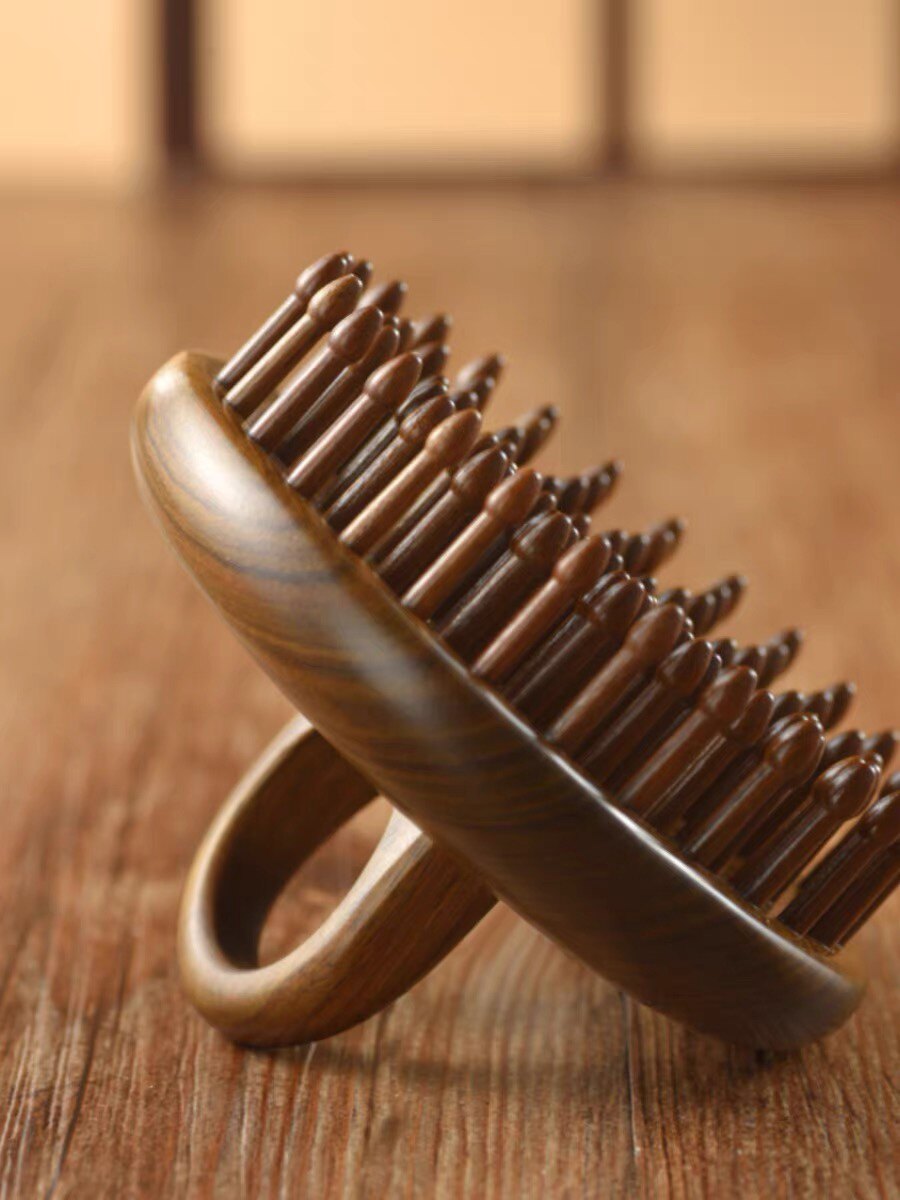 📚 天然绿檀木指环梳圆盘插齿梳按摩头疗护发护理全身可用疏通经络