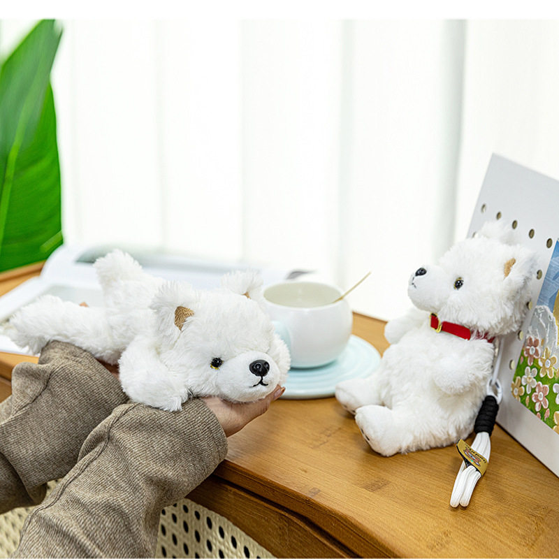 📚 小动物毛绒玩具可爱白狗掌中宝仿真动物公仔挂件礼品摆件