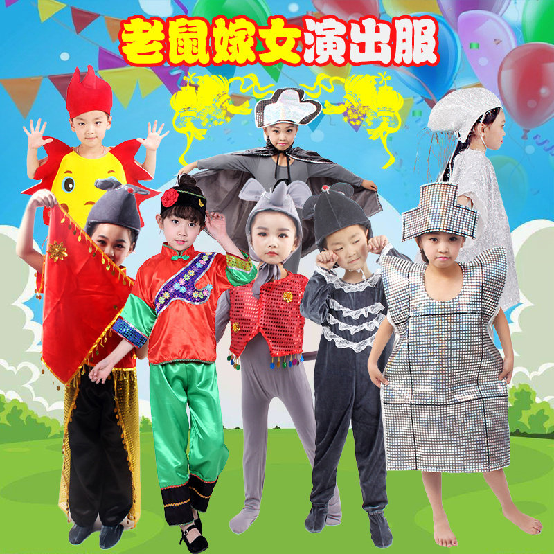 📚 儿童老鼠娶亲演出服童话剧老鼠嫁女儿娶新娘太阳风墙乌云表演服装