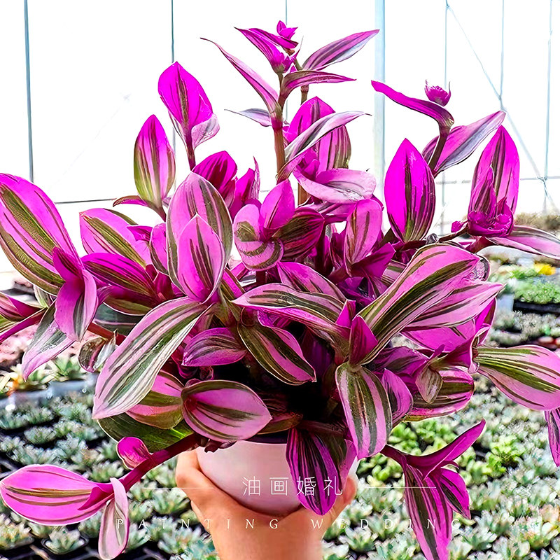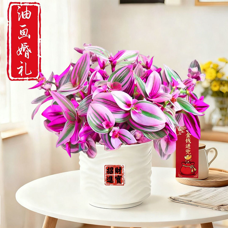 📚 荷兰进口婚礼油画盆栽室内植物七彩玫红观叶紫露草进化吊兰防辐射